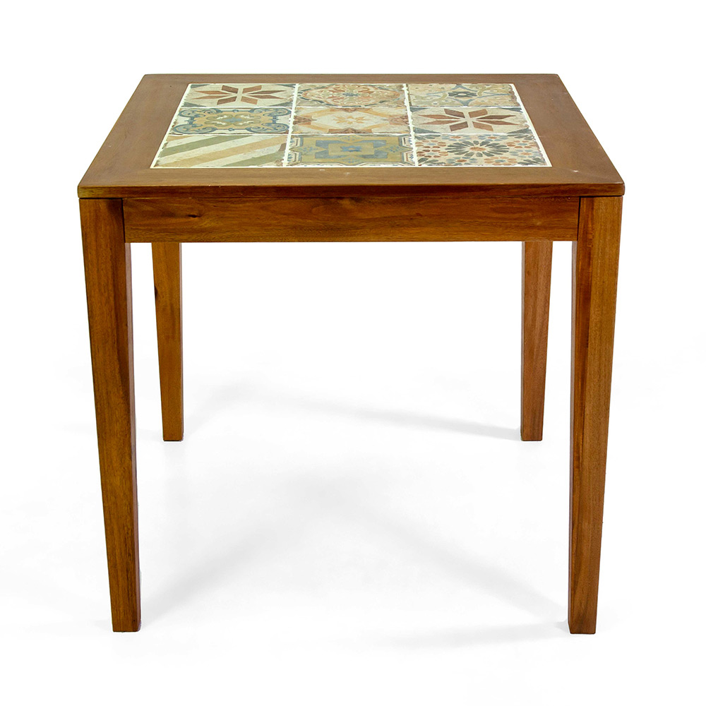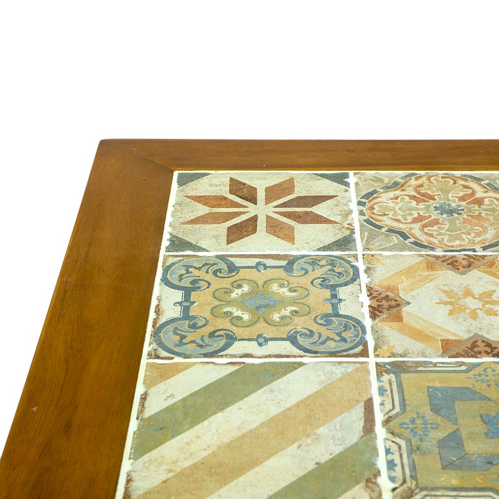Entdecken Sie den Esstisch, der rustikale Eleganz und traditionelle Kunst in einem exklusiven Möbelstück vereint. Dieser schöne Tisch hat eine dekorierte Keramik Platte, die harmonisch in eine massive Holzstruktur eingebettet ist. Jede Fliese wurde sorgfältig ausgewählt, um ein Mosaik zu schaffen, das an handwerkliche Traditionen erinnert und ihn zu einem einzigartigen und faszinierenden Stück macht.