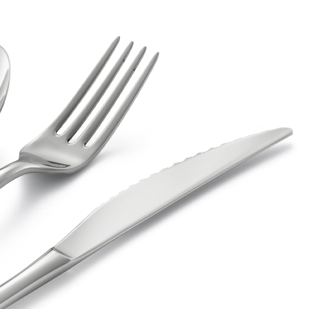 Komplettes Besteck aus eckigem Edelstahl poliert, 24-teilig made in Italy.
