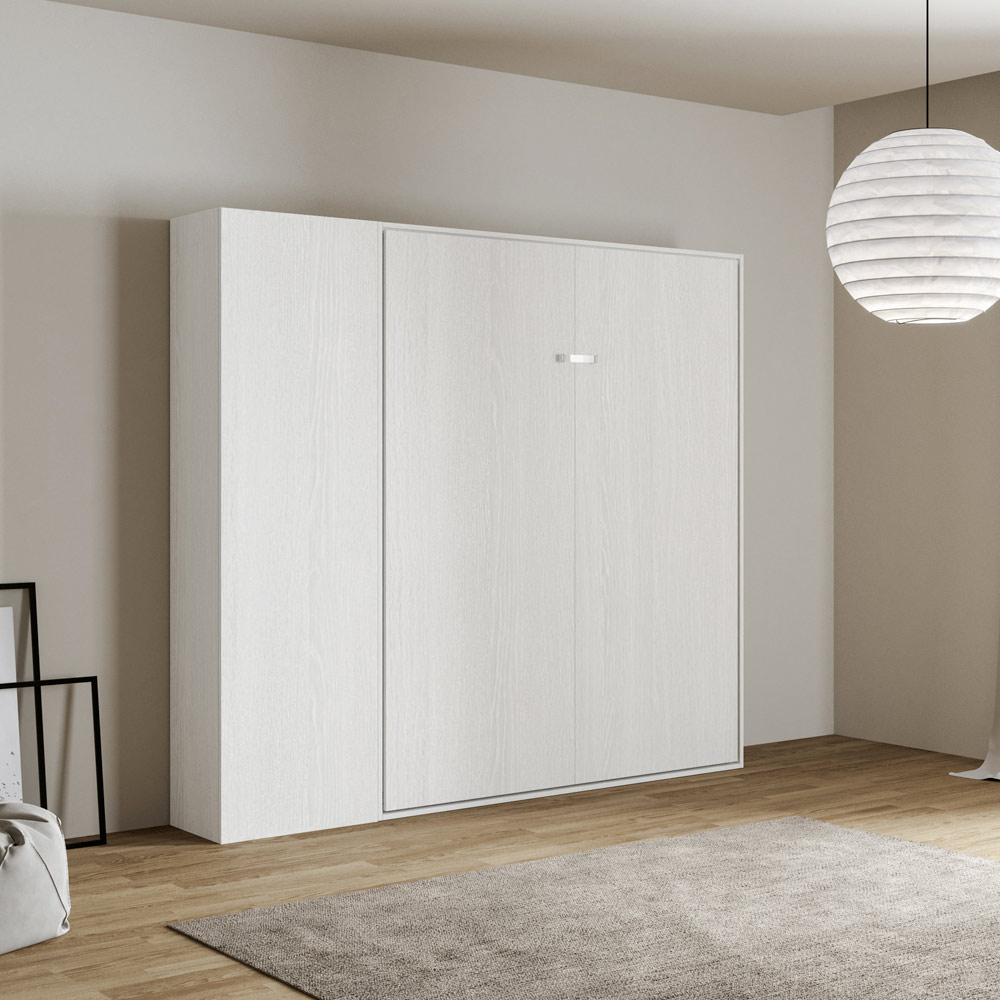 Der Bettrahmen besteht aus 18 mm dicken Melamin-Spanplatten und gewährleistet so Widerstandsfähigkeit und Langlebigkeit. Der Öffnungsmechanismus ist sanft und sicher und verwandelt die Wand mit einer einfachen Geste in ein bequemes Bett.