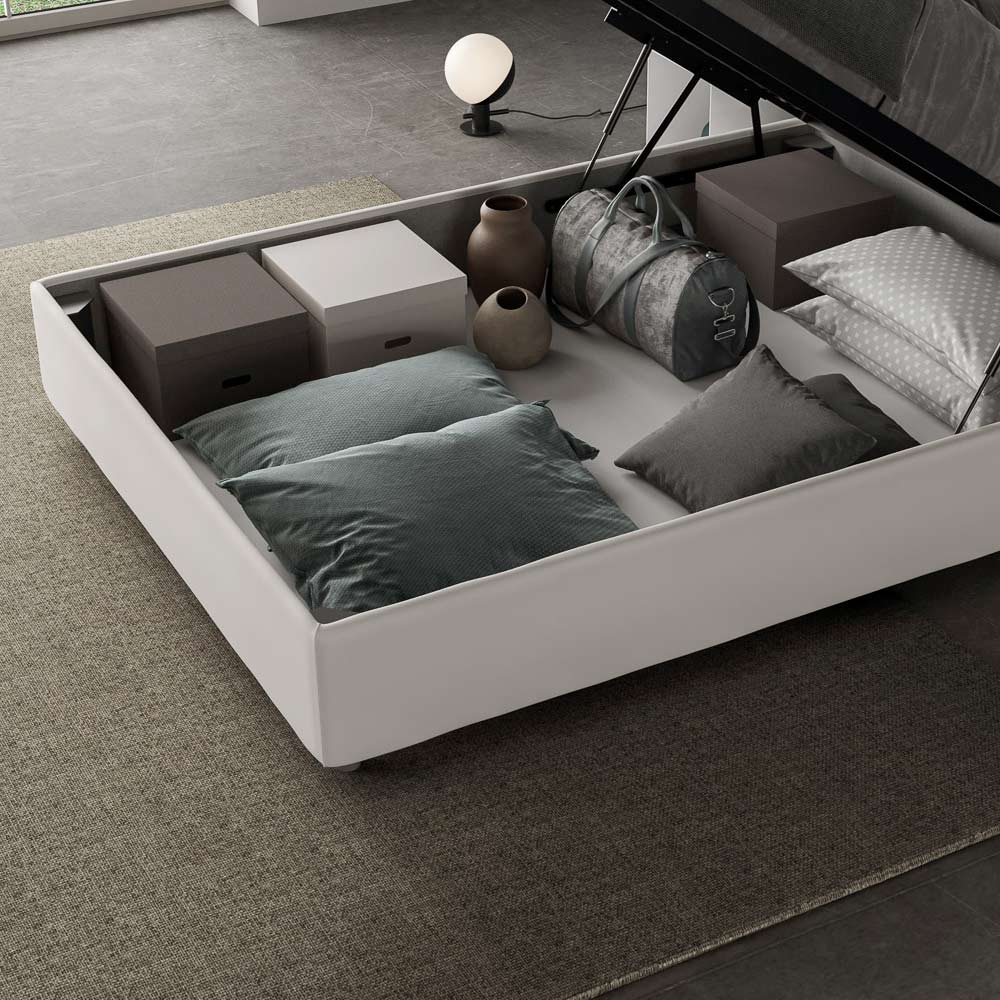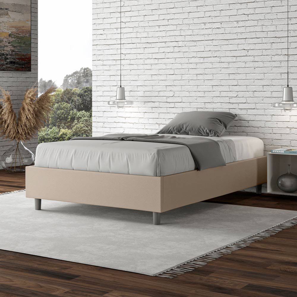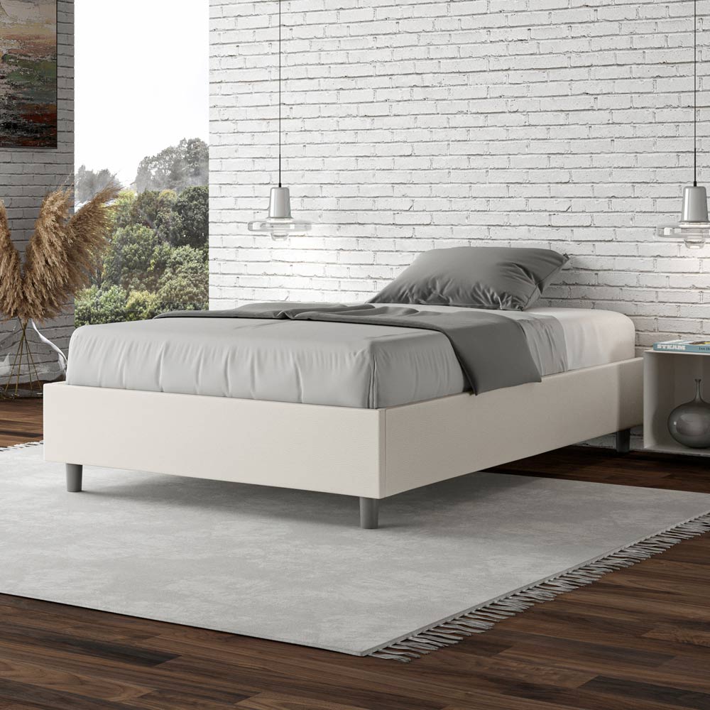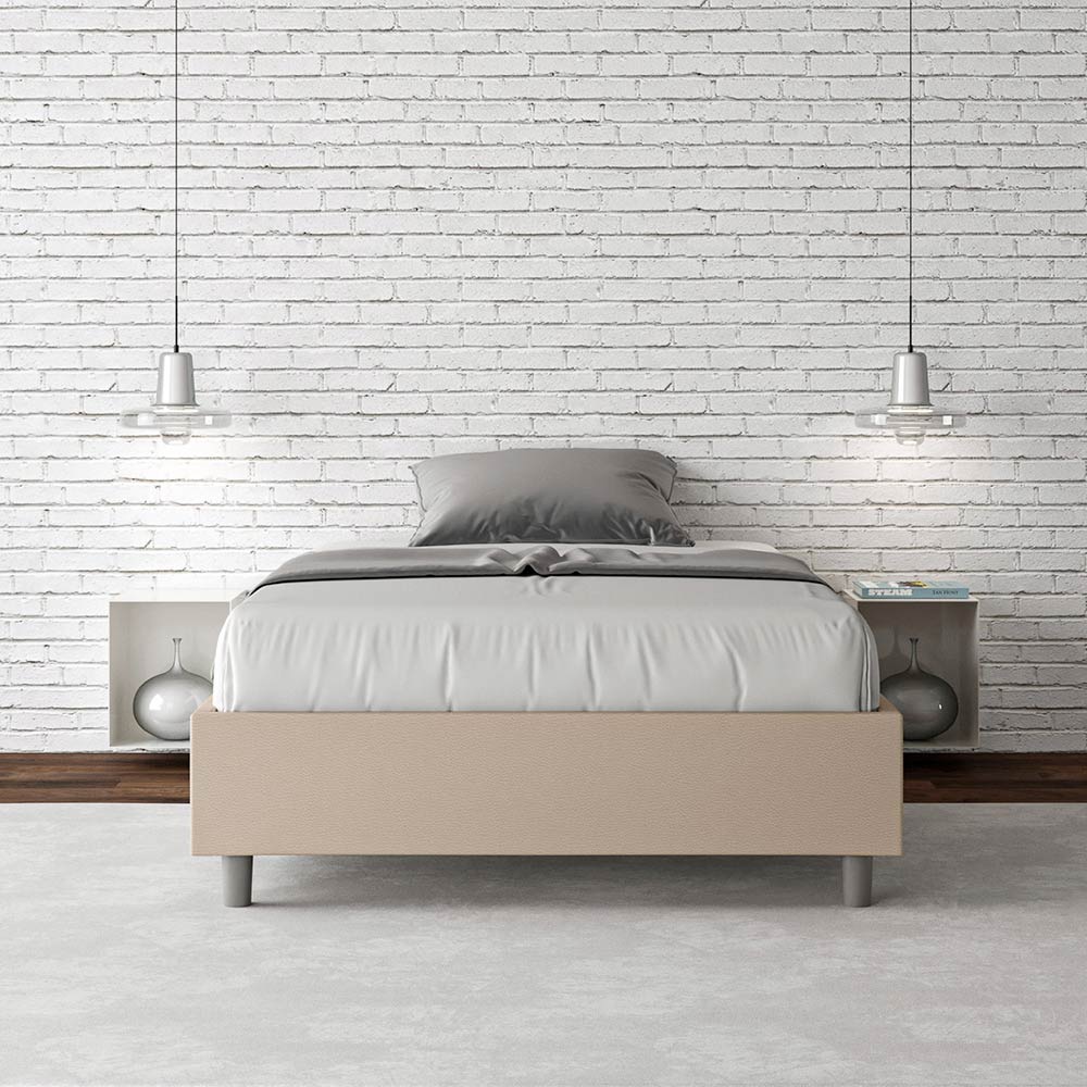 Gepolstertes Queensize-Bett (120 x 200 cm) aus Spanplatten , bezogen mit Kunstleder , vollständig in Italien hergestellt. Dieses Queensize-Bett besticht durch sein klares, minimalistisches Design . Seine zurückhaltende Ästhetik und Vielseitigkeit ermöglichen eine mühelose Integration in jedes Ambiente. Ein besonderes Merkmal ist das Fehlen eines traditionellen Kopfteils . Dadurch eignet es sich ideal für die Platzierung an ungewöhnlichen Orten, beispielsweise unter einem Fenster, im Dachgeschoss oder in der Nähe einer dekorativen Wand, ohne die Aussicht zu beeinträchtigen oder den gewünschten Effekt zu erzielen.