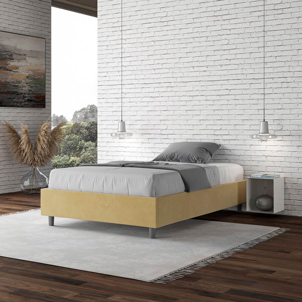 Gepolstertes Queensize-Bett (120 x 200 cm) aus Spanplatten mit Mikrofaserbezug , vollständig Made in Italy. Dieses Queensize-Bett besticht durch sein klares, minimalistisches Design . Seine zurückhaltende Ästhetik und Vielseitigkeit ermöglichen eine mühelose Integration in jedes Ambiente. Ein besonderes Merkmal ist das Fehlen eines traditionellen Kopfteils . Dadurch eignet es sich ideal für die Platzierung an ungewöhnlichen Orten, beispielsweise unter einem Fenster, im Dachgeschoss oder in der Nähe einer dekorativen Wand, ohne die Aussicht zu beeinträchtigen oder den gewünschten Effekt zu erzielen.