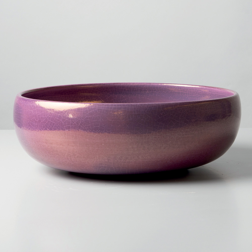 Dieses Aufsatzwaschbecken aus Raku-Ton ist handgedrechselt und mit einer metallischen Craquelé-Glasur versehen, die ihm eine dynamische Optik und einen starken Charakter verleiht. Ein Einrichtungsaccessoire für alle, die sich ein Badezimmer mit Charakter, Originalität und modernem Flair wünschen.