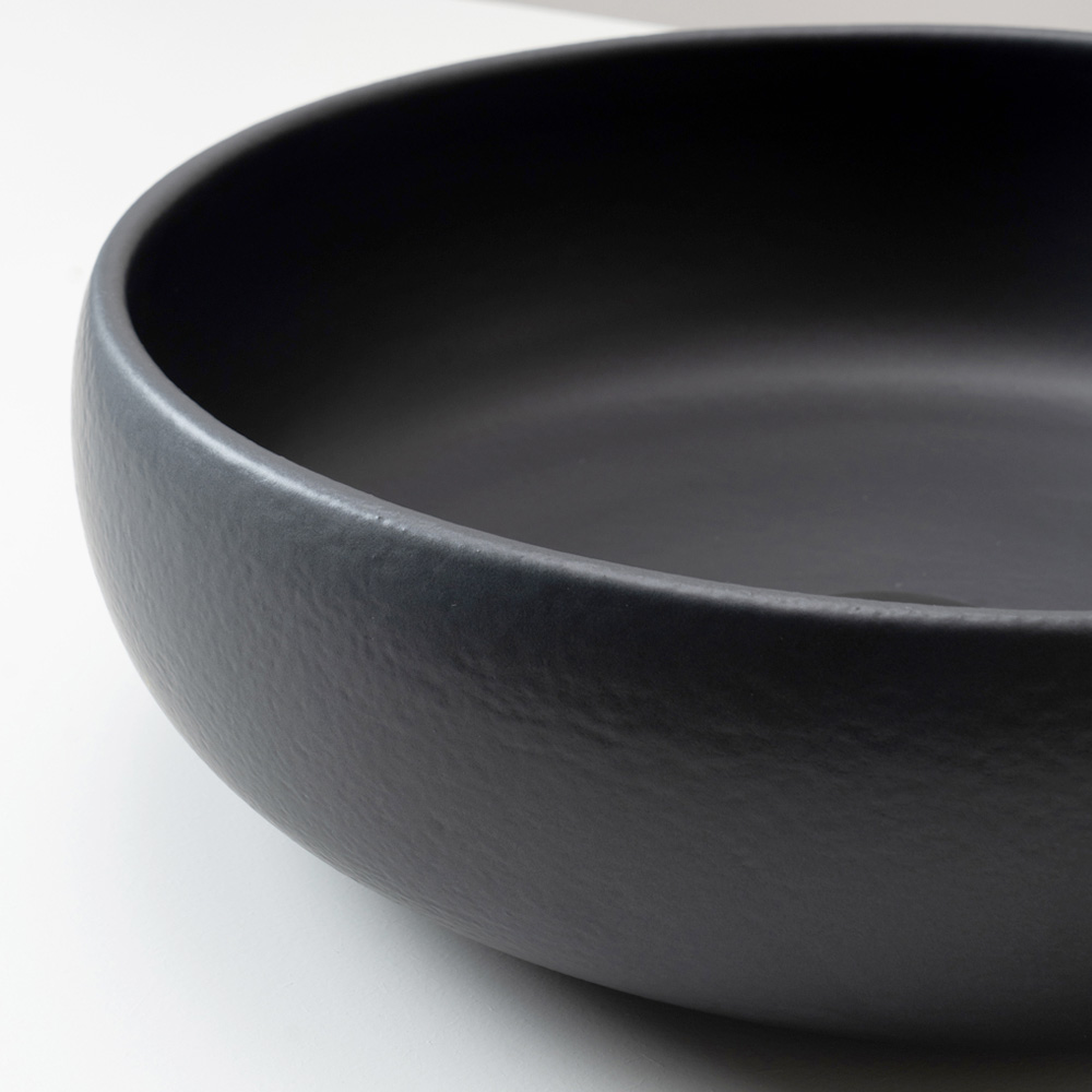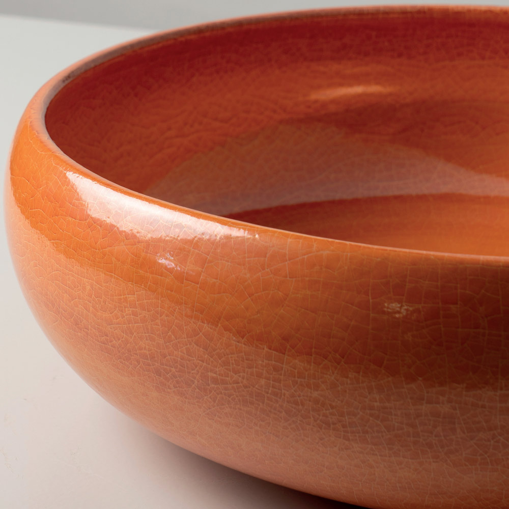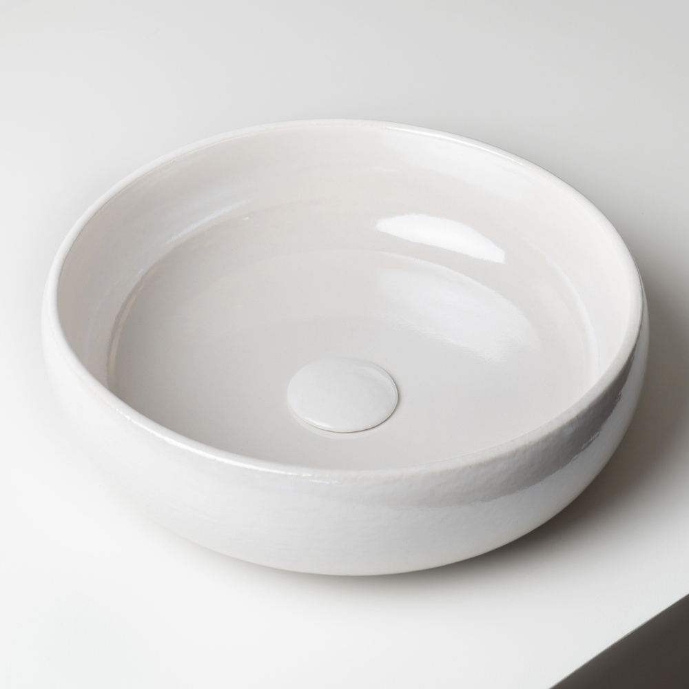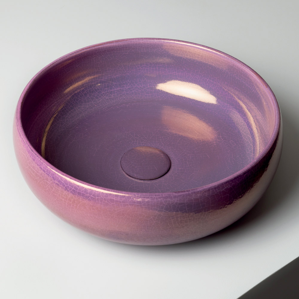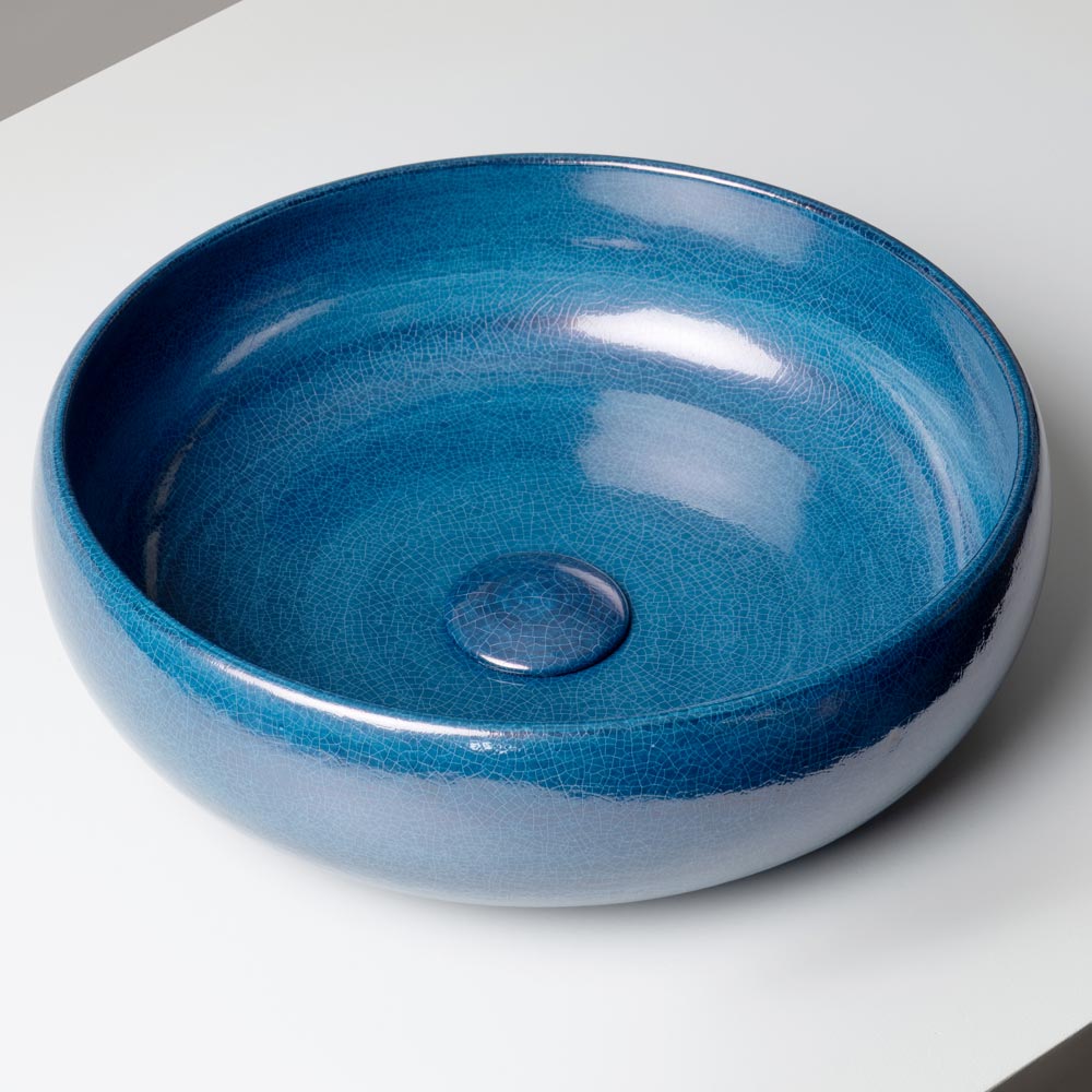 Die essentielle, ursprüngliche Form wird durch harmonische Proportionen ausgeglichen, während die glasierte Oberfläche lebendige, unregelmäßige Reflexionen erzeugt, die jedes Waschbecken zu einem Unikat machen. Die charakteristische Raku-Craquelé-Glasur unterstreicht die strukturierte, handwerkliche Optik des Produkts und verwandelt es in ein wahres Dekorationselement.