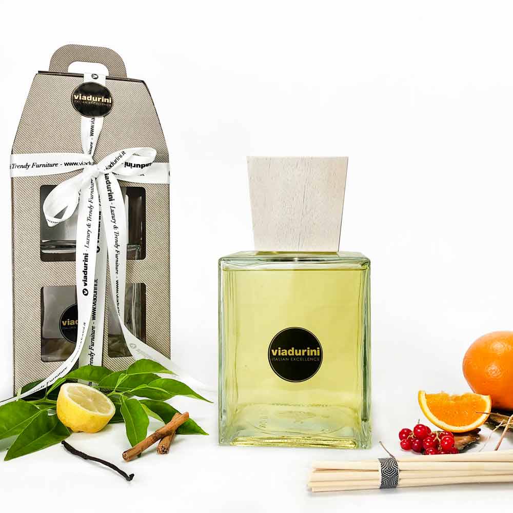 Fruchtiger Raumduft aus Mandarine und Zimt mit Dekorsticks - Made in Italy Essenz.