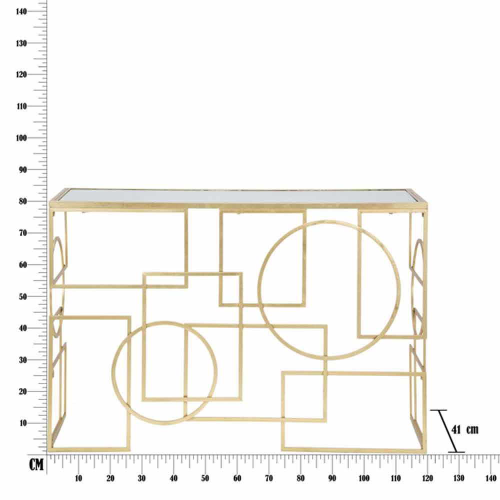Moderner rechteckiger Konsolentisch 120X41X81 cm aus Eisen mit Spiegelplatte.