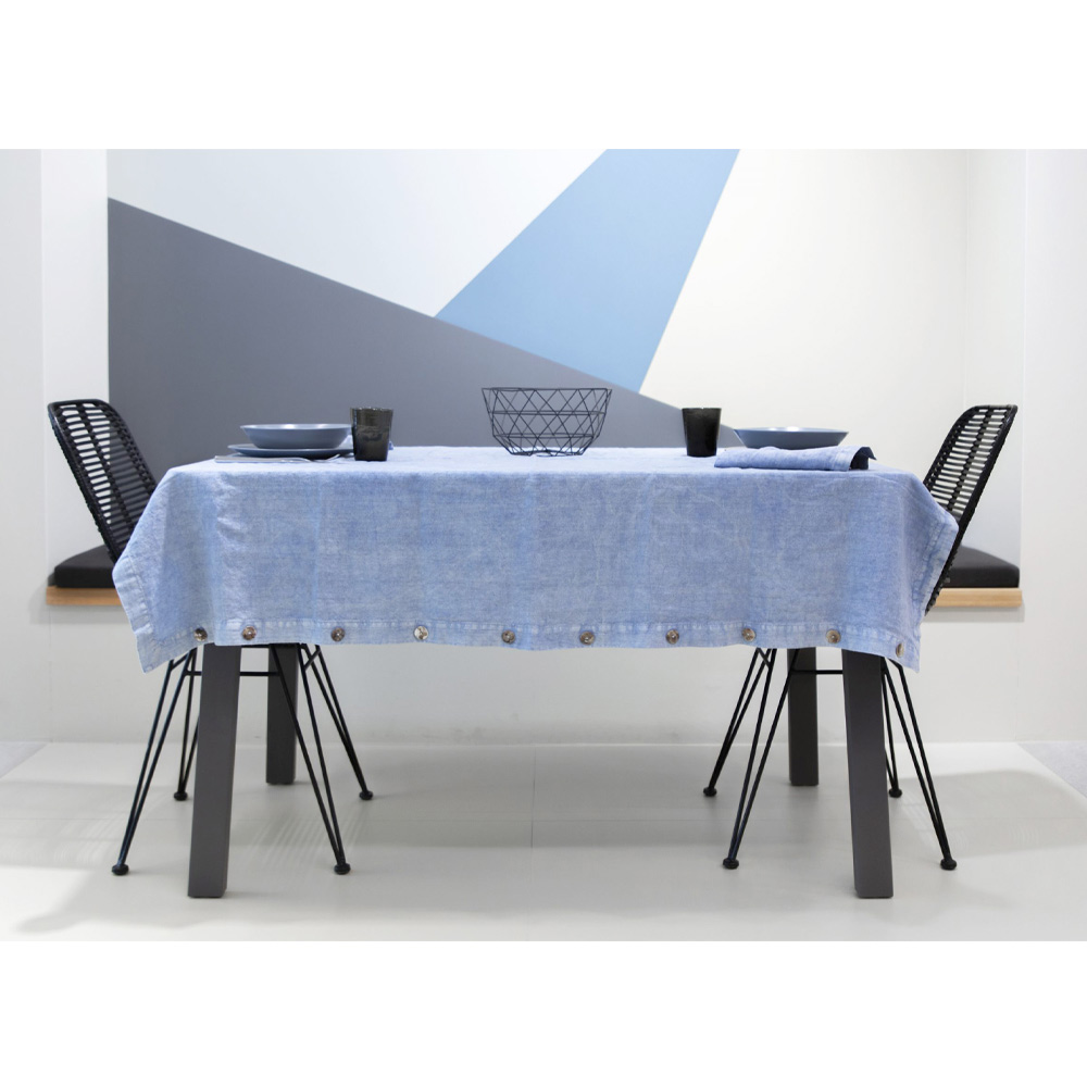 Rechteckige Leinentischdecke mit Knopflöchern und 10 Knöpfen, Luxus - Mittelmeer