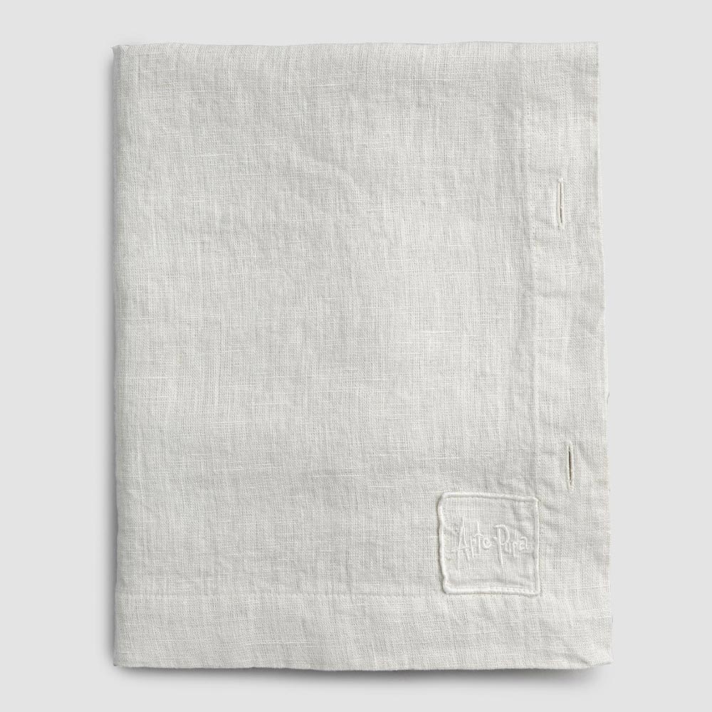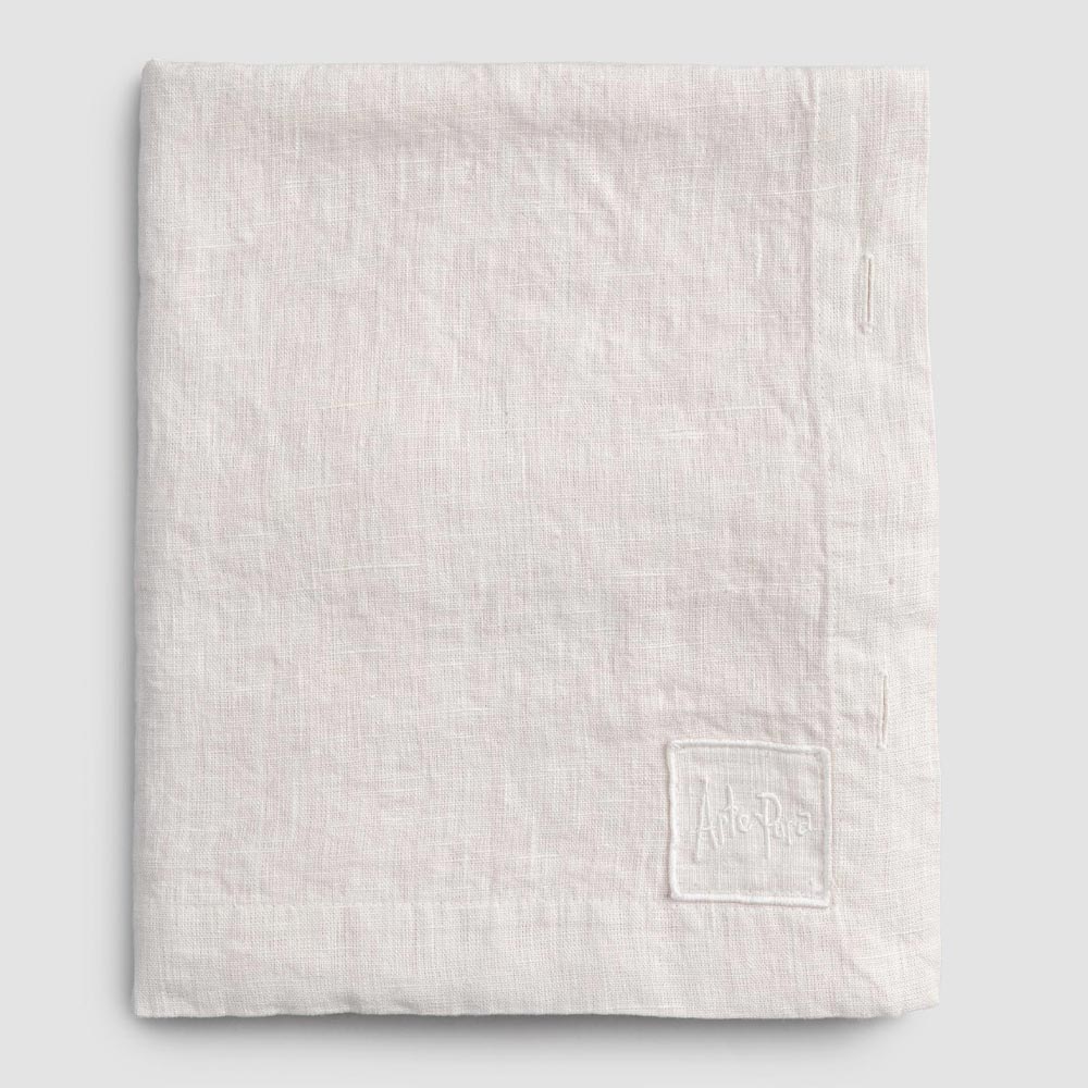 Modulare rechteckige Leinentischdecke mit Perlmuttknöpfen, handgefertigte Qualität made in Italy.