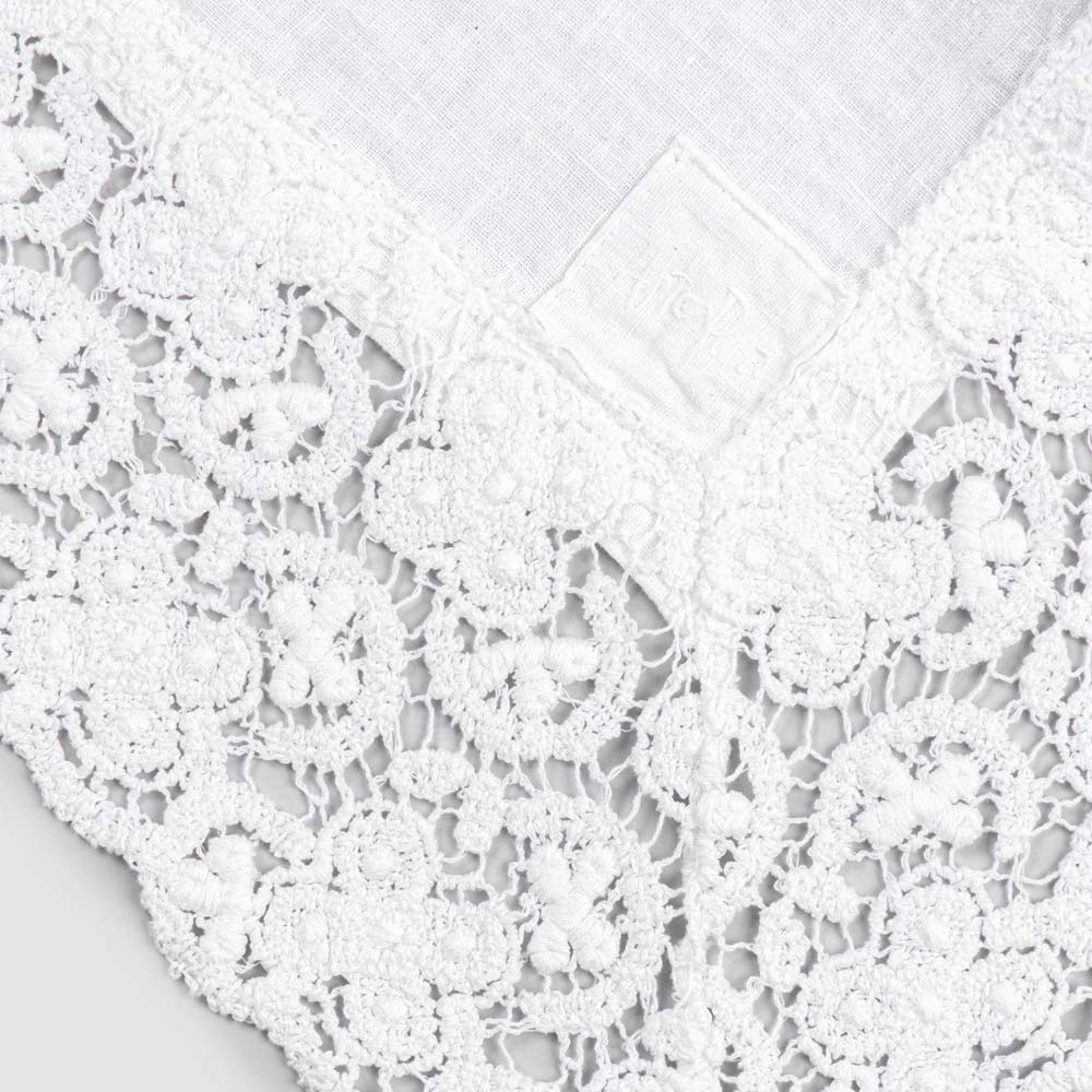 Maße: Komposition:- 100% Leinen mit 100% gehäkelter Baumwollspitze