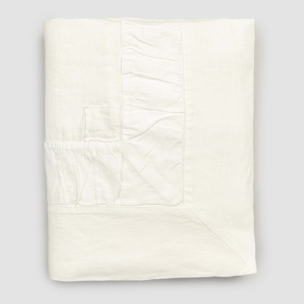 Rechteckige Tischdecke aus weißem Leinen, Rahmen und geprägter Kantenfalte - Mippel