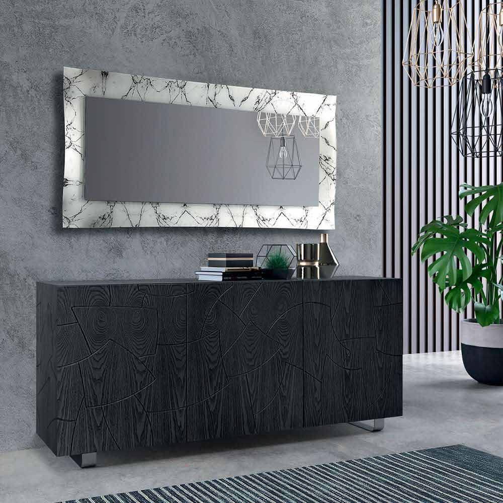 RechteckigerWandspiegel,hergestellt in Italien, mit Innenspiegelin verspiegelter Kristalloptik und 6 mm gebogener Glasrahmen in verspiegelter Kristall- oder Marmoroptik . Das Design dieses Einrichtungsaccessoires ist schlicht und äußerst minimalistisch , wird jedoch durch die wundervollen Oberflächen und die unregelmäßige Struktur des Rahmens, die dem Produkt Bewegung und Originalität verleiht, bereichert und einzigartig gemacht. Das Ergebnis ist ein moderner und eleganter Spiegel, der sich ideal für die Positionierung in ebenso modernen Umgebungen eignet, die einen Hauch von Klasse und Stil erfordern.
