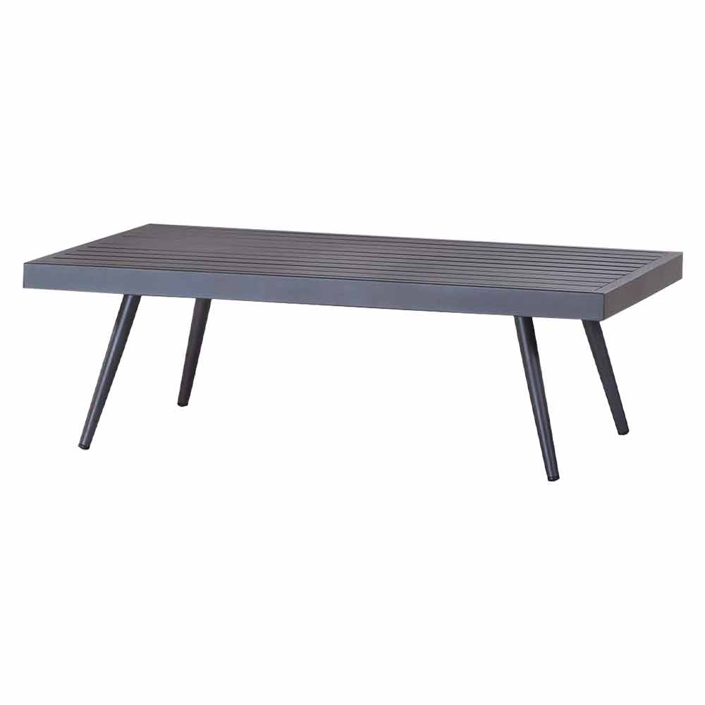 Couchtisch im Freien mit Platte und Struktur in lackiertem Aluminium- Anthrazit-Finish. Vielseitigkeit und Wesentlichkeit sind die Hauptmerkmale, die dieses Einrichtungszubehör für Außenräume am besten beschreiben. Dank der nüchternen Nuance und der einfachen Formen , die es umreißen, passt es sich perfekt an jede Einrichtungssituation an und bietet einen praktischen Dekorplan. Unterstützung und ein vielseitiges dekoratives Element . Darüber hinaus gewährleisten die verwendeten Materialien ein widerstandsfähiges Produkt mit ausgezeichneter Haltbarkeit, was es zur perfekten Wahl für diejenigen macht, die einen Couchtisch suchen, der Funktionalität und Design gewährleistet.