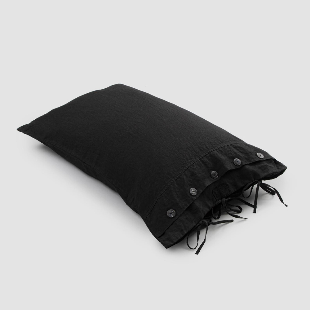 Rechteckiger Kissenbezug aus weißem oder schwarzem Leinen mit Knöpfen und Schnürsenkeln - Agora
