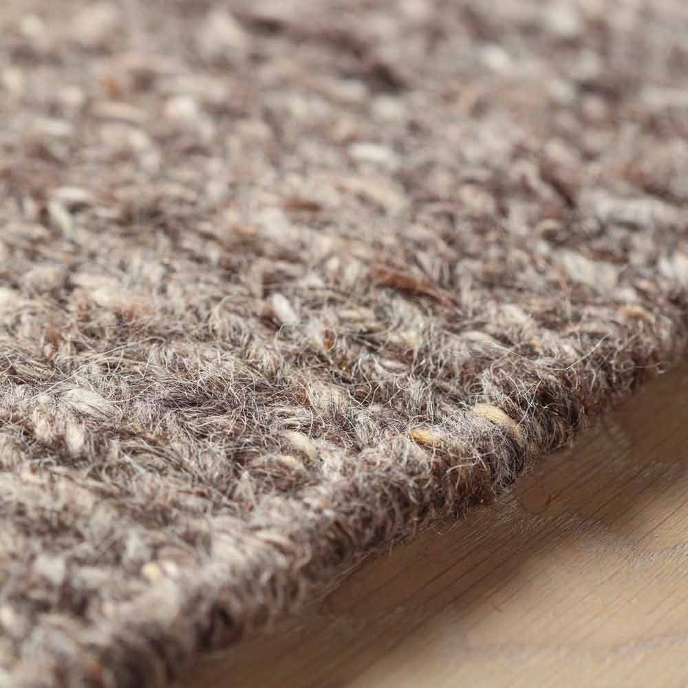 Die charakteristischen Merkmale dieser Teppichlinie sind die natürliche Kompaktheit und das dicke Wollgewebe mit faserigen und vollmundigen Texturen, die sich in einem flachen, organischen Schnittpunkt in brauner oder cremefarbener Farbe gegenseitig verfolgen. Die neutralen und zarten Farben definieren einen eleganten und modernen Stil, indem sie Tradition auf zeitgemäße Weise vorschlagen.