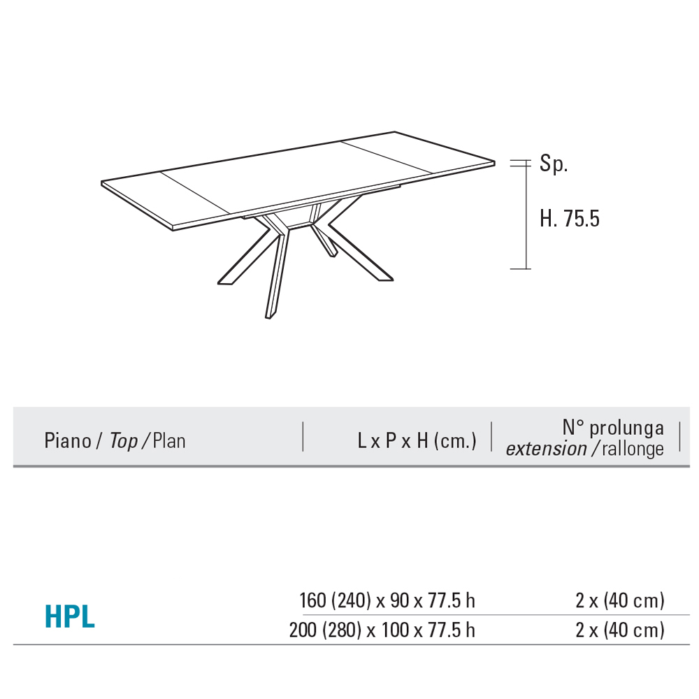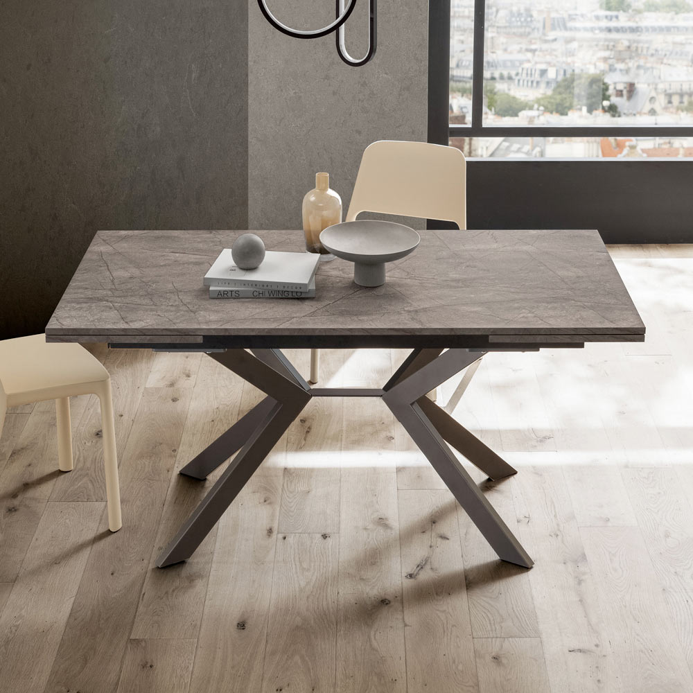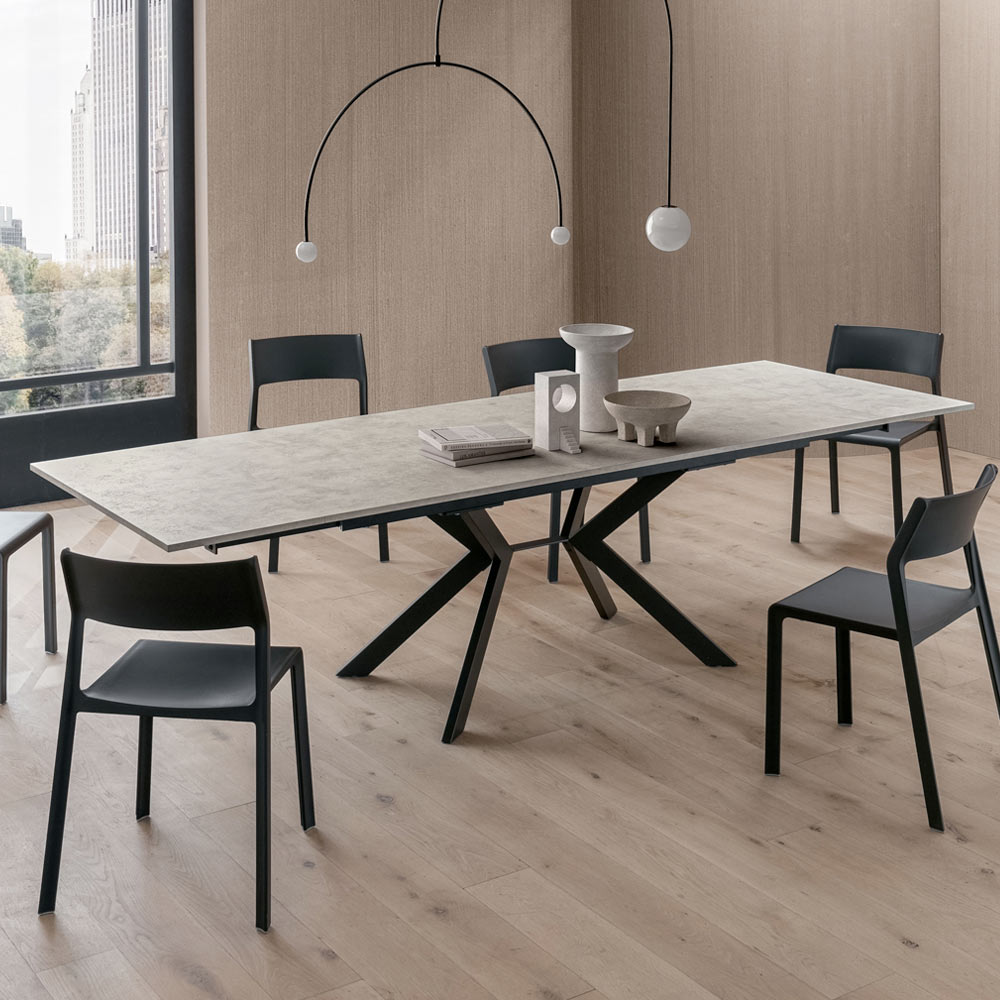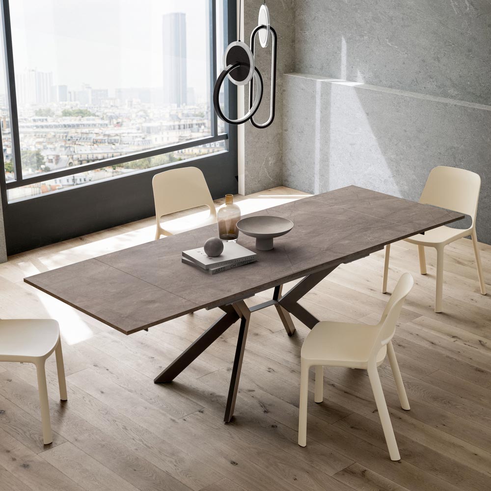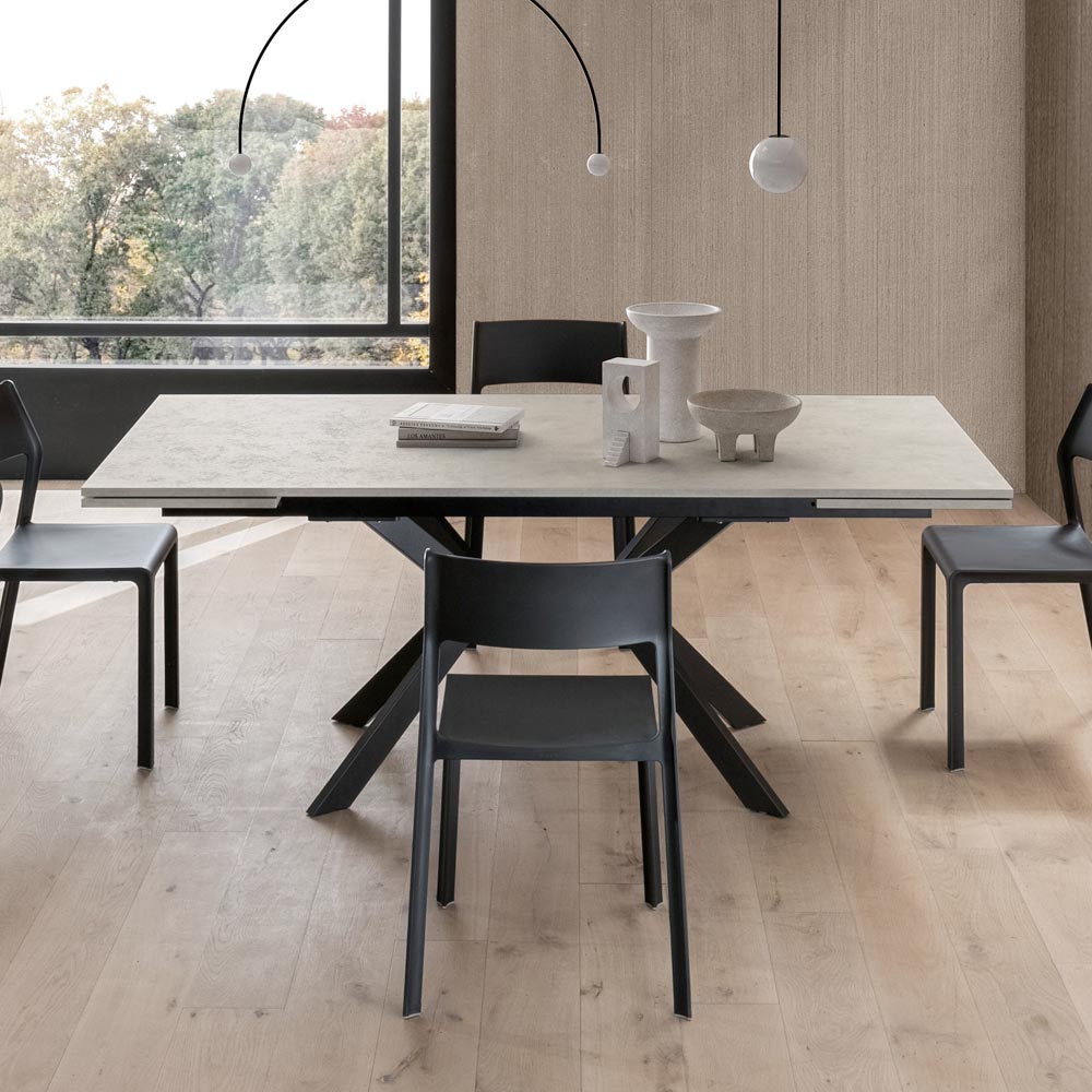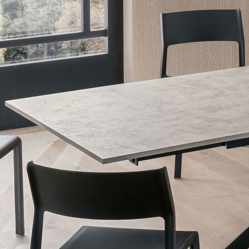 Eleganz und Funktionalität vereinen sich in diesem ausziehbaren Tisch aus HPL und Metall . Er wurde für alle entwickelt, die ein Möbelstück mit starker optischer Wirkung, aber äußerster Funktionalität suchen.