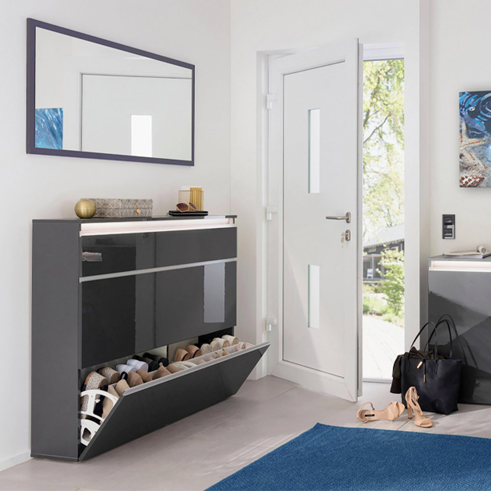 Der Rahmen besteht aus einer nachhaltigen Melamin-Holzplatte und ist lackiert und glänzend in zwei Ausführungen erhältlich. Lesen Sie die Befestigungsanweisungen, indem Sie sie aus dem entsprechenden Abschnitt "Dokumente" herunterladen.