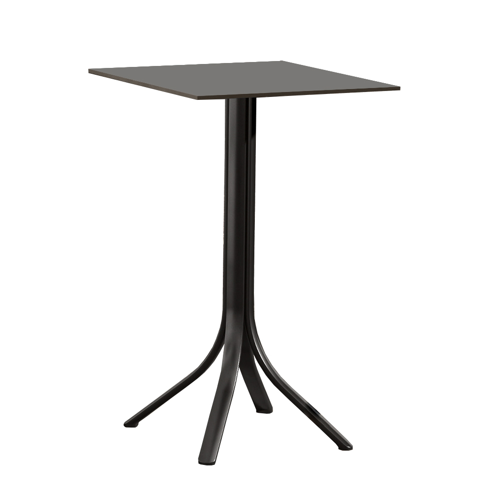 Technische Merkmale und Materialien: Der hohe Vierspeichenrahmen besteht aus epoxidpulverbeschichtetem Aluminium, kombiniert mit der 10 mm dicken quadratischen Oberseite aus HPL-Laminat.