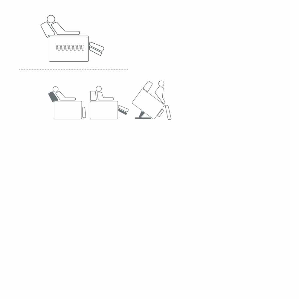 Vibromassage für eine angenehme verteilte Wirkung auf der Rückenlehne, Sitz und Fußteil, automatisch oder motorisierte Bewegung problemlos übernehmen kann, sind Das sind die Möglichkeiten und die entwickelten Kombinationen: eine harmonische Lösung für alle Bedürfnisse.