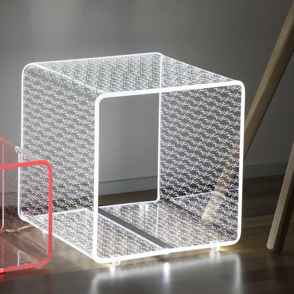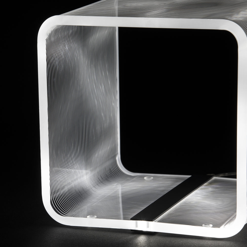 Quadratische RGB-LED-Tischlampe aus transparentem Acryl 2 Varianten made in Italy.