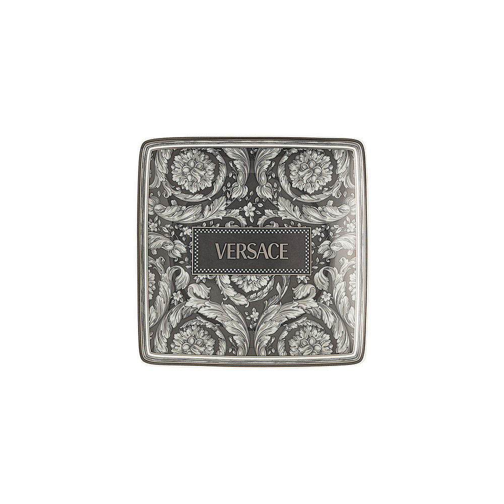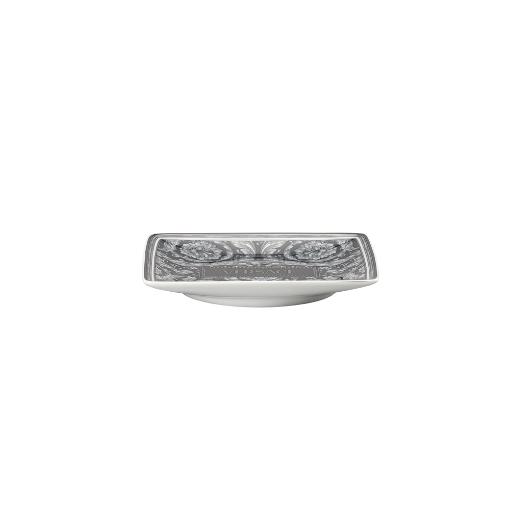 Entdecken Sie die zeitlose Eleganz dieser flachen, quadratischen Porzellanschüssel , ein Stück von seltener Schönheit, das jede kulinarische Präsentation oder Heimdekoration aufwertet. Dieses exquisite Stück ist mit einem komplizierten Blumenmuster in Grau-/Schwarztönen auf weißem Hintergrund verziert und spiegelt eine anspruchsvolle Ästhetik wider Feingefühl und Engagement für hochwertige Handwerkskunst.