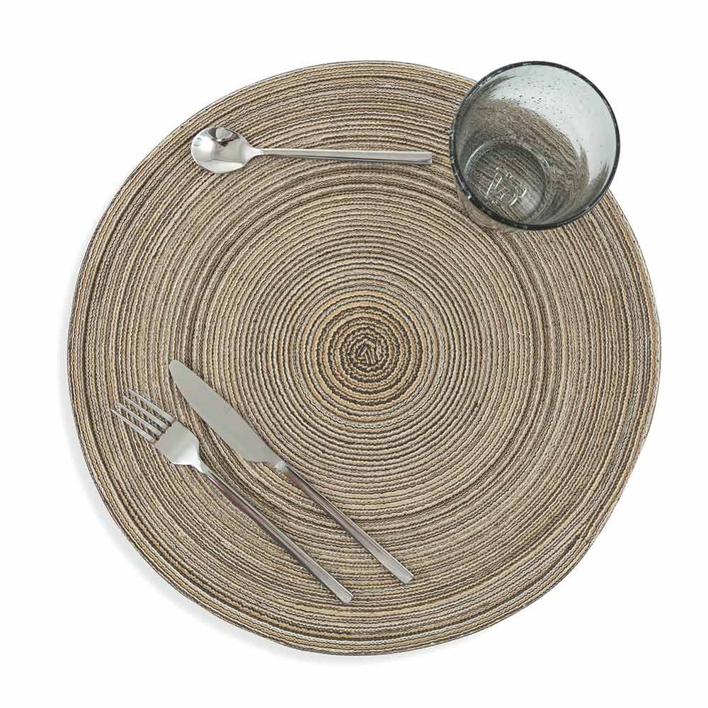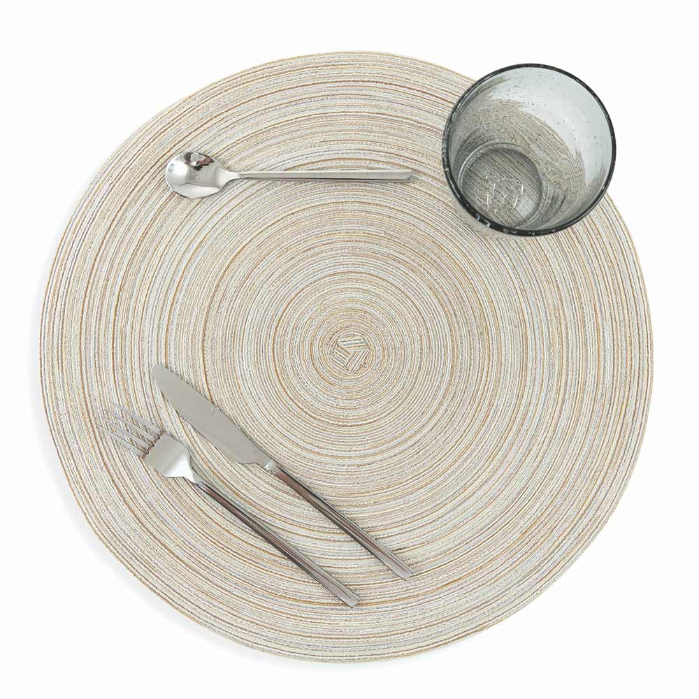 Rundes Tischset-Set aus weißem oder braunem Polyester, 12-teilig.