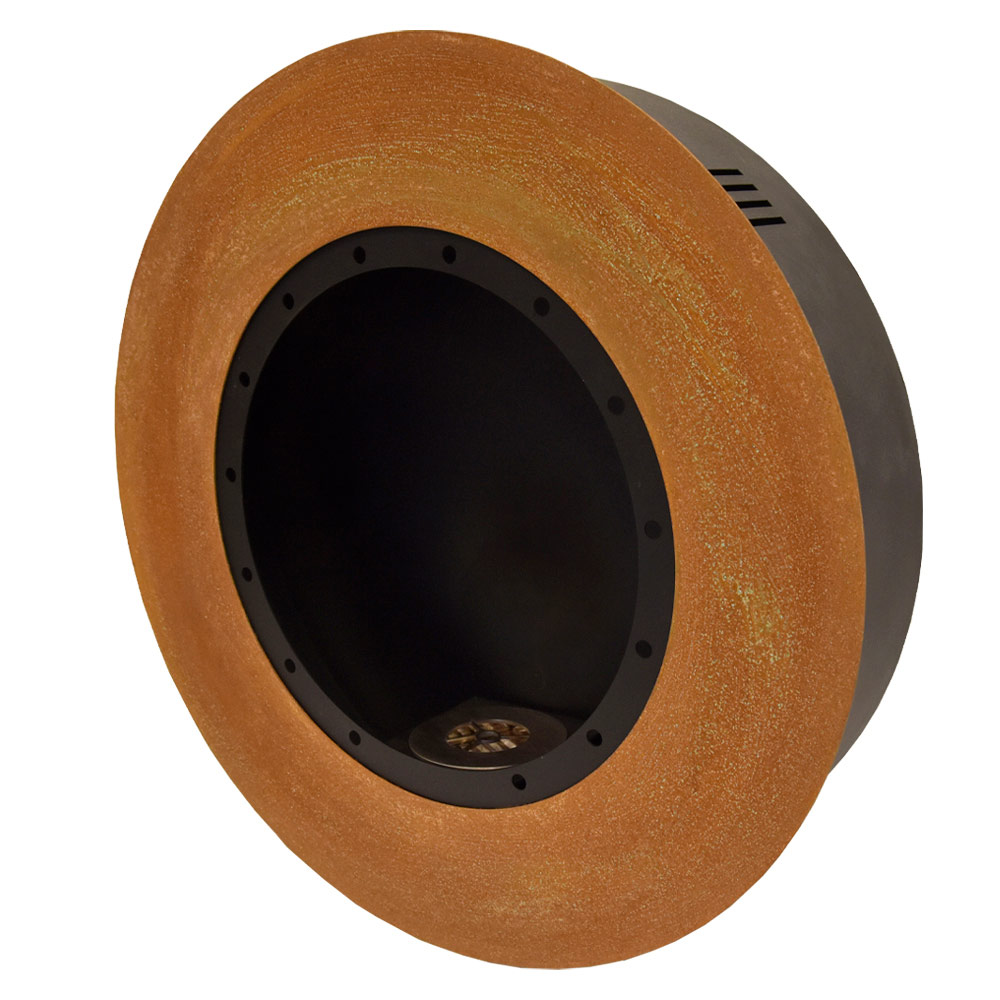 Wand-Bio-Kamin in modernem und rundem Design aus Stahl, hergestellt in Italien.