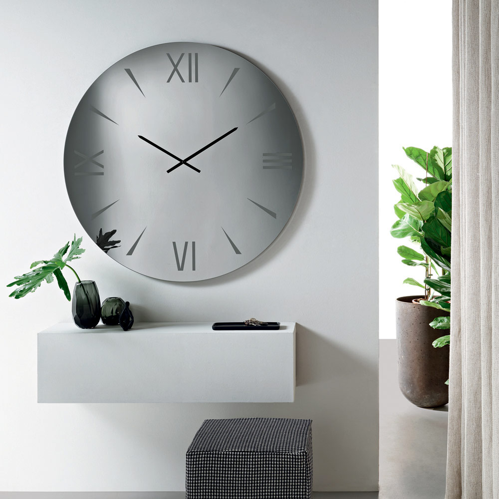 Eine elegante , in Italien gefertigte Designer-Wanduhr , ideal zur Verschönerung von Wohnzimmer , Eingangsbereich oder Esszimmer . Ihr modernes Design verwandelt die Zeitanzeige in ein dekoratives Element, das der Wand Eleganz und Persönlichkeit verleiht.