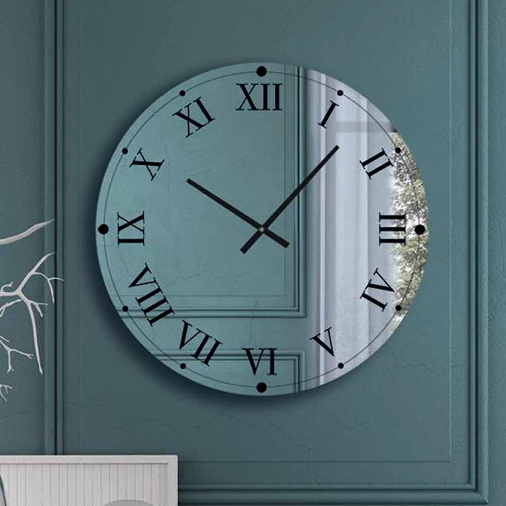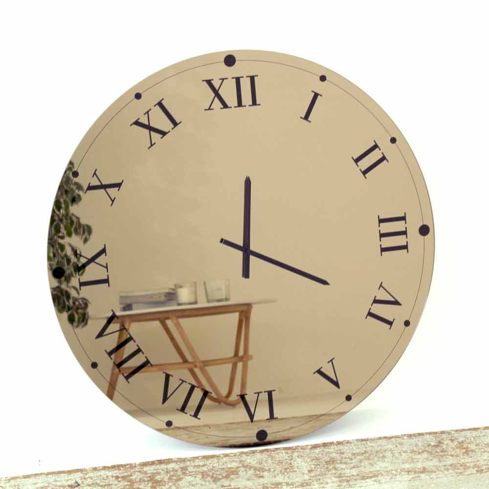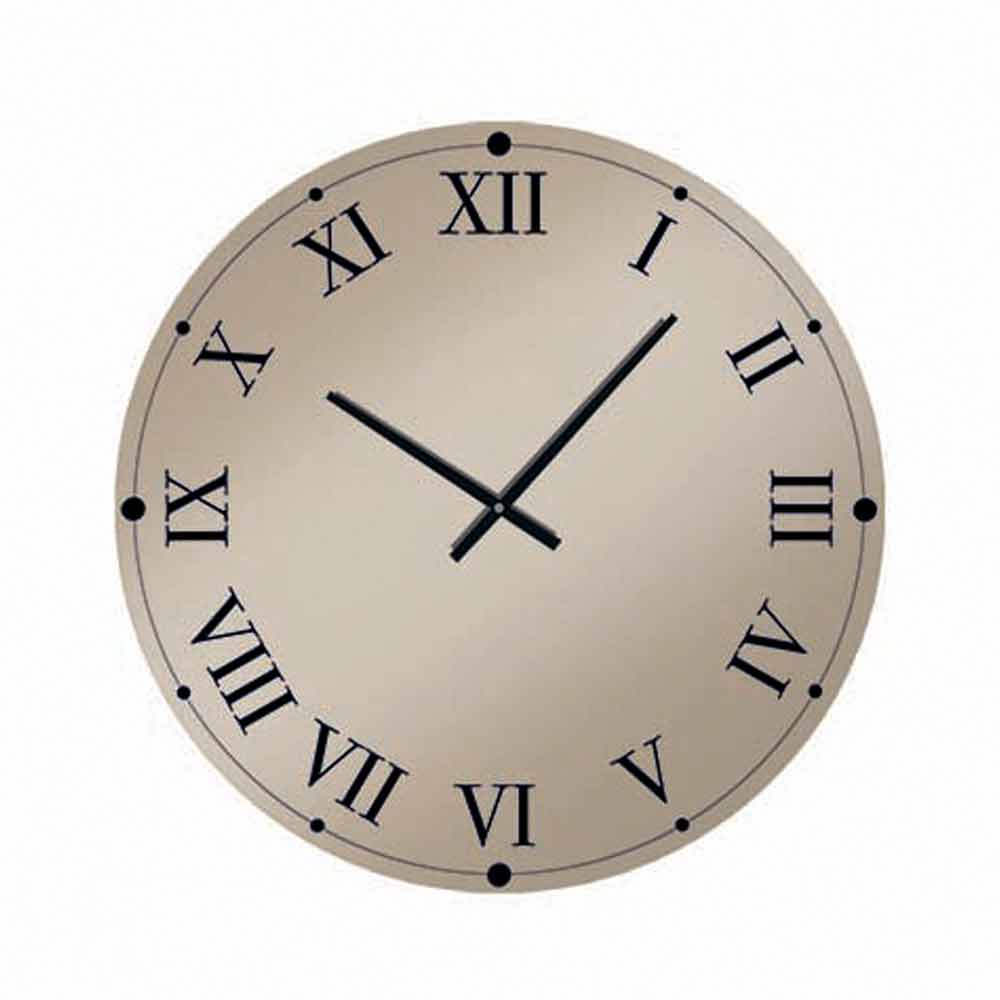 Runde WanduhrMade in Italy aus verspiegeltemKristallglas mit römischen Ziffern und schwarzen Zeigern. Die Verwendung der verspiegelten Oberfläche macht dieses Einrichtungsaccessoire zur perfekten Verbindung zwischen einem Spiegel und einer echten Uhr, erfüllt eine äußerst nützliche Funktion und fungiert gleichzeitig als wunderbarer Lichtpunkt, der dazu beiträgt, die Räume optisch zu vergrößern. Sein Design zeichnet sich durch Eleganz und Wesentlichkeit aus, Eigenschaften, aus denen ein edler Artikel entsteht, der sich ideal für die unterschiedlichsten modernen Umgebungen eignet, den Möbeln eine persönliche und kreativeNote verleiht und ihren ästhetischen Wert erhöht.