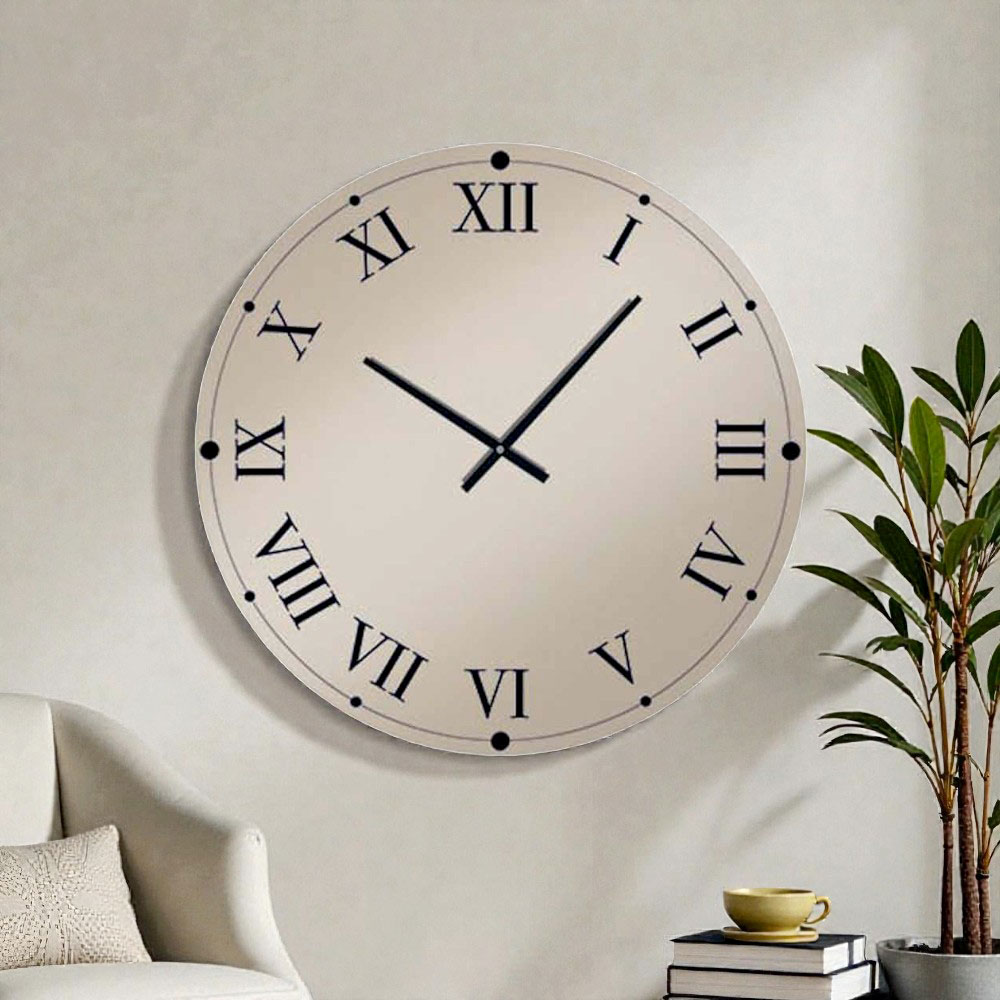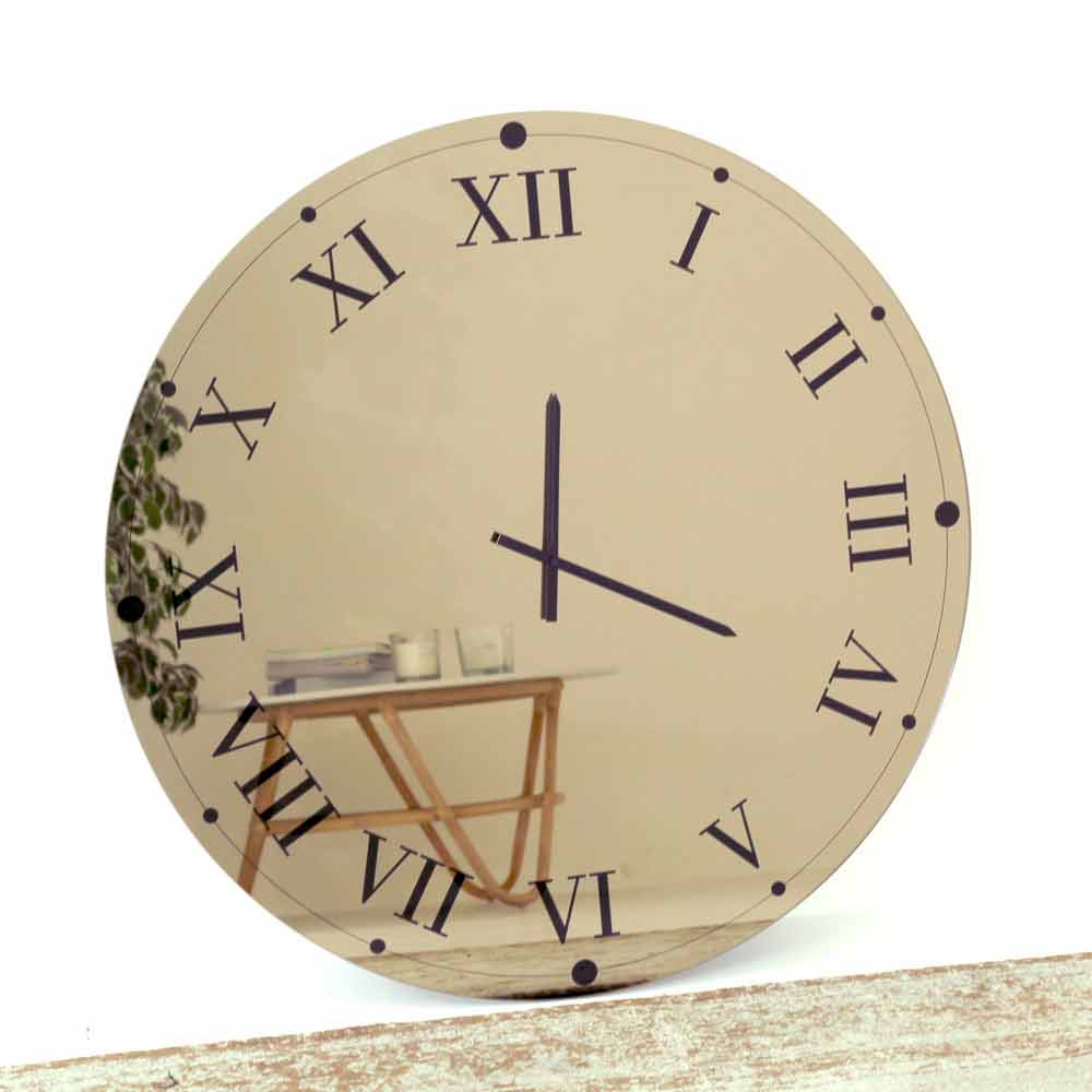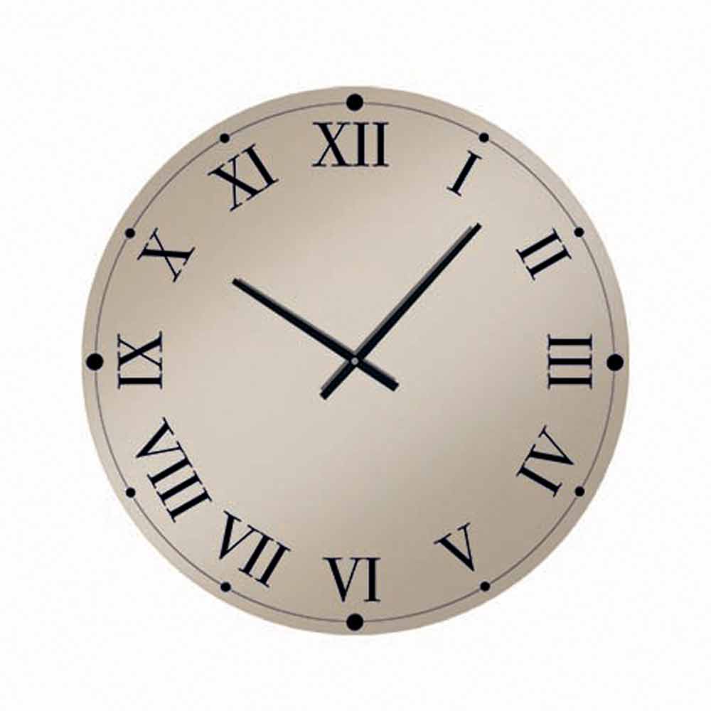 Runde Wanduhr,hergestellt in Italien, aus verspiegeltem Kristallglasmit römischen Ziffern und schwarzen Zeigern. Durch die Verwendung einer spiegelnden Oberfläche ist dieses Möbelstück die perfekte Verschmelzung von Spiegel und echter Uhr. Es erfüllt eine äußerst nützliche Funktion und dient gleichzeitig als wunderbare Lichtquelle, die dazu beiträgt, Räume optisch zu vergrößern. Sein Design zeichnet sich durch Eleganz und Essenzialität aus, Eigenschaften, die ein stilvolles Möbelstück hervorbringen, das sich ideal für die unterschiedlichsten modernen Umgebungen eignet, den Möbeln eine persönliche und kreativeNote verleiht und ihren ästhetischen Wert steigert.