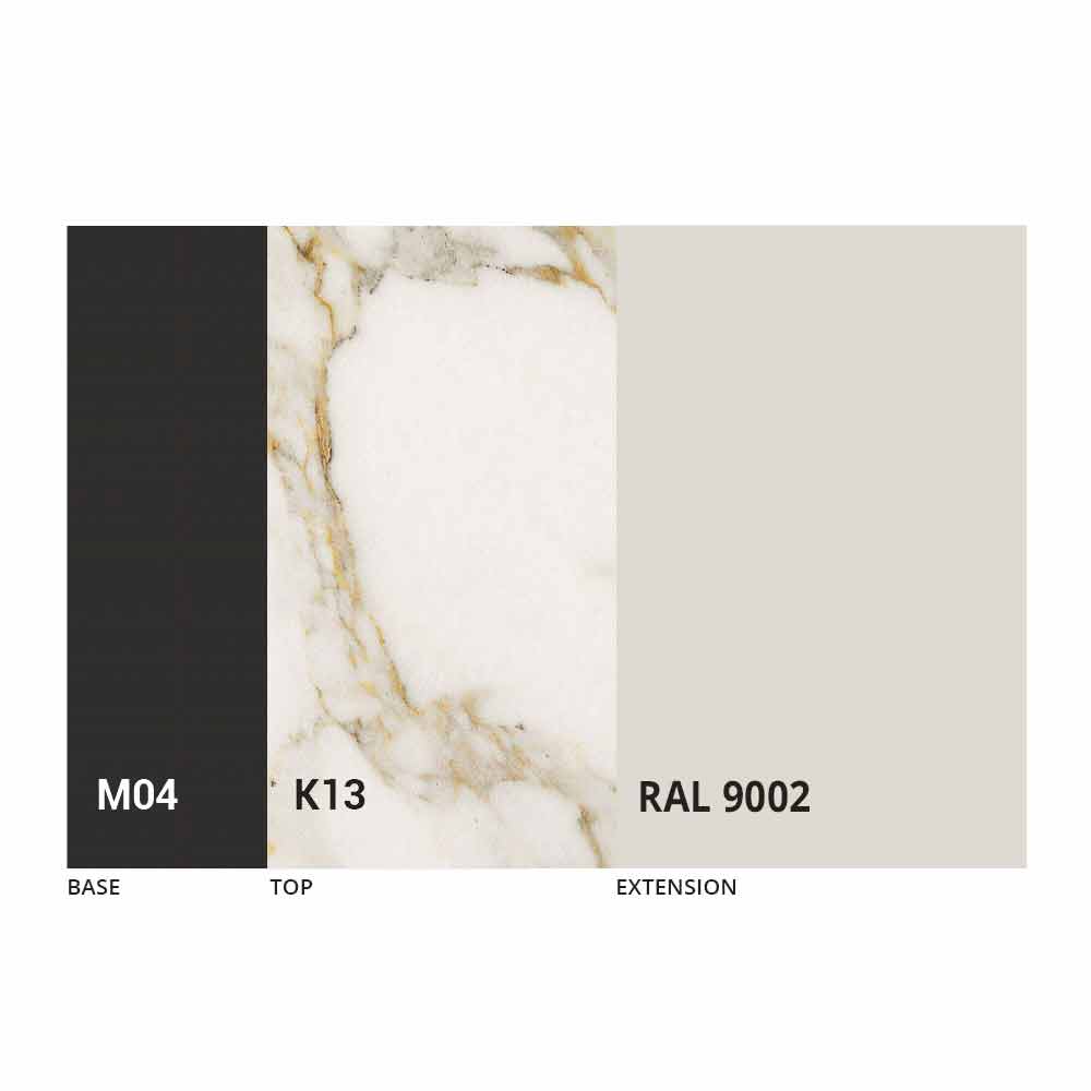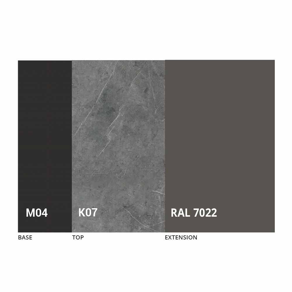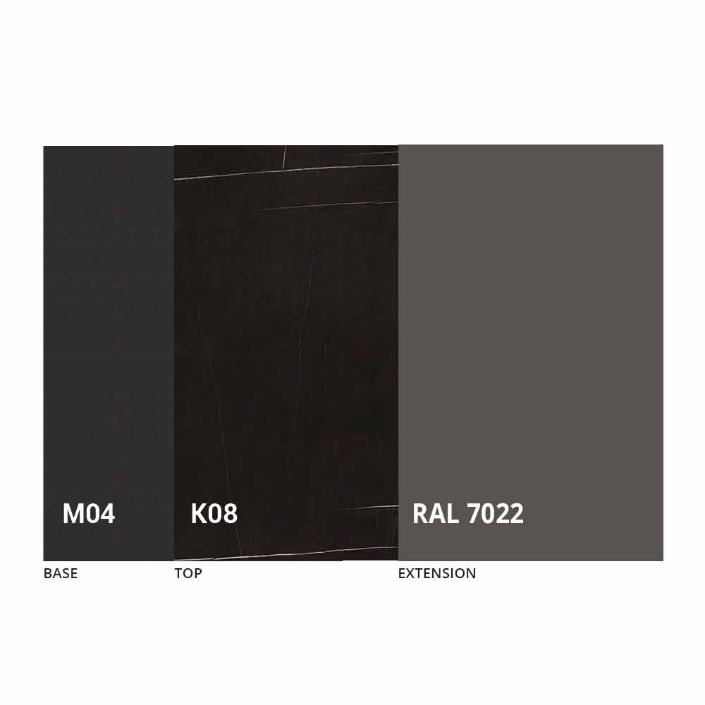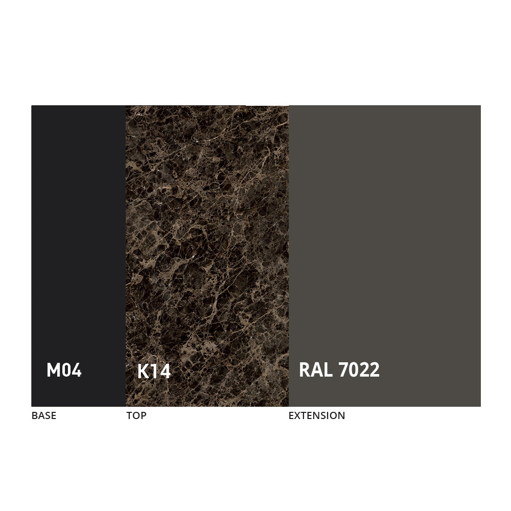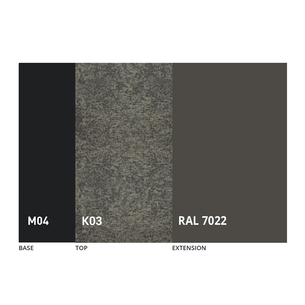 Die Platte und das Untergestell des Tisches können mit verschiedenen Musteroberflächen individuell gestaltet werden. Für Informationen kontaktieren Sie uns über das Formular " Informationen anfordern ".