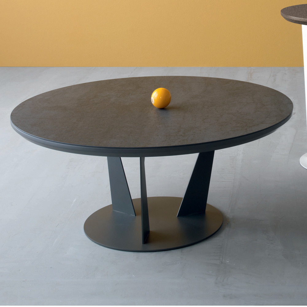 Runder Couchtisch aus schräger Metall- und Keramikplatte, 3 Größen made in Italy.