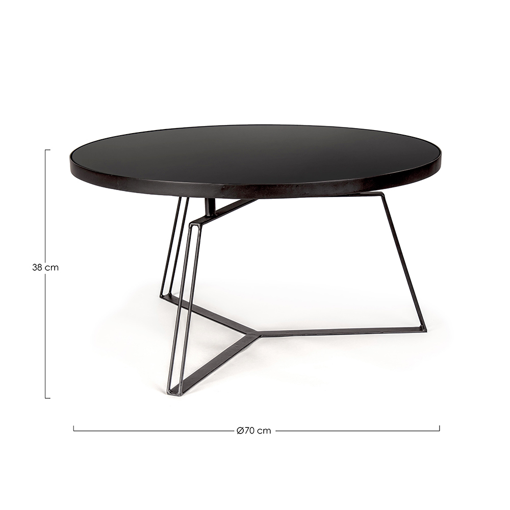Runder Couchtisch aus schwarzem Stahl und Glasplatte, 2 Größen.