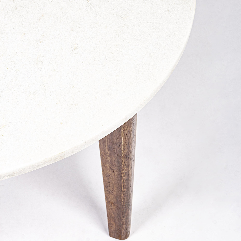 Niedriger runder Couchtisch aus Mangoholz und Marmorplatte, 2 Größen.