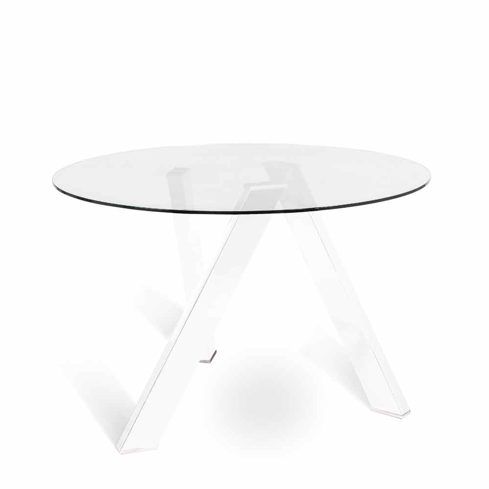 Tisch mit Sockel aus weiß lackiertem Metall oder Stahl und Tischplatte aus transparentem gehärtetem Glas.https://www.viadurini.de//data/prod/img/tavolo-da-pranzo-tondo-con-top-in-vetro-adamo-design-moderno-2.jpg581.34726.68145.3420InStockRunde TischeViadurini Living000.02016-04-12 12:13:40