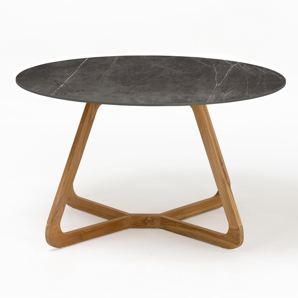 Runder Gartentisch aus Holz und Keramik, Made in Italy