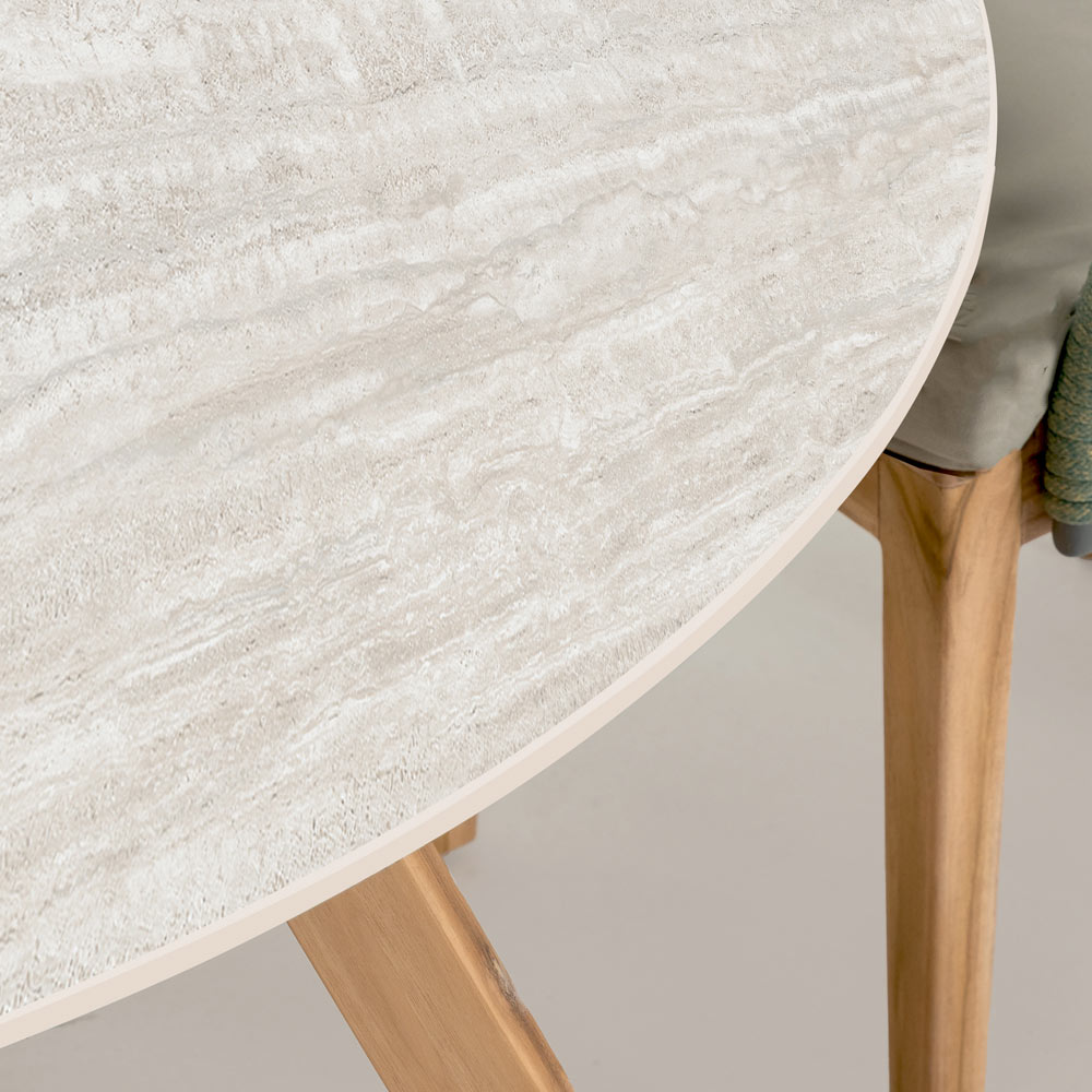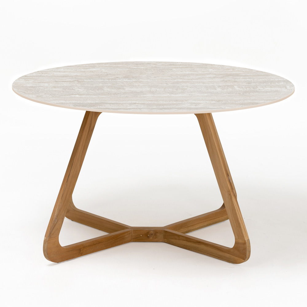 Runder Gartentisch aus Holz und Keramik, Made in Italy