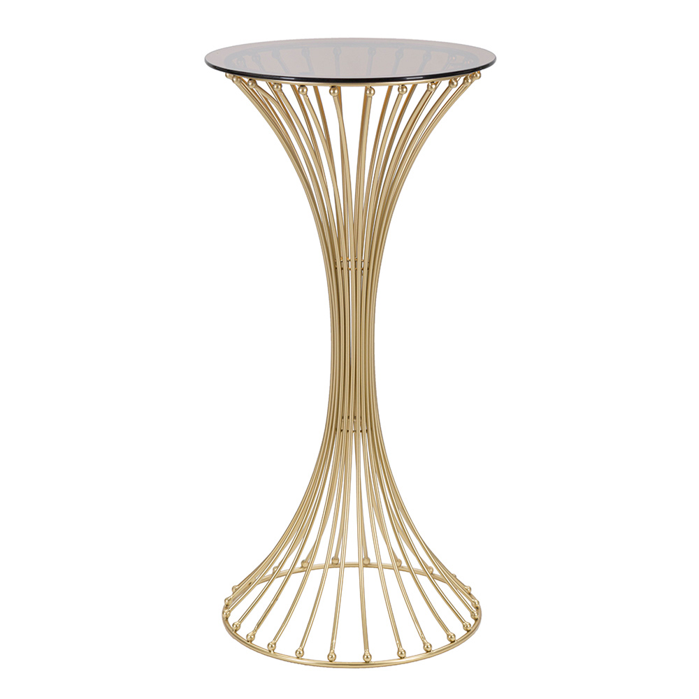 Dieser hohe Couchtisch ist ein klares Beispiel für Eleganz und zeitgenössisches Design . Der goldene Sockel erhebt sich in einem eleganten Gewirr von Linien, die an die dünnen Zweige einer Pflanze erinnern, und trägt eine runde Glasplatte. Die Kombination aus Glas und goldenem Eisen verstärkt nicht nur die optische Schönheit , sondern spricht auch für die Qualität der Materialien und gewährleistet Haltbarkeit und Stabilität .