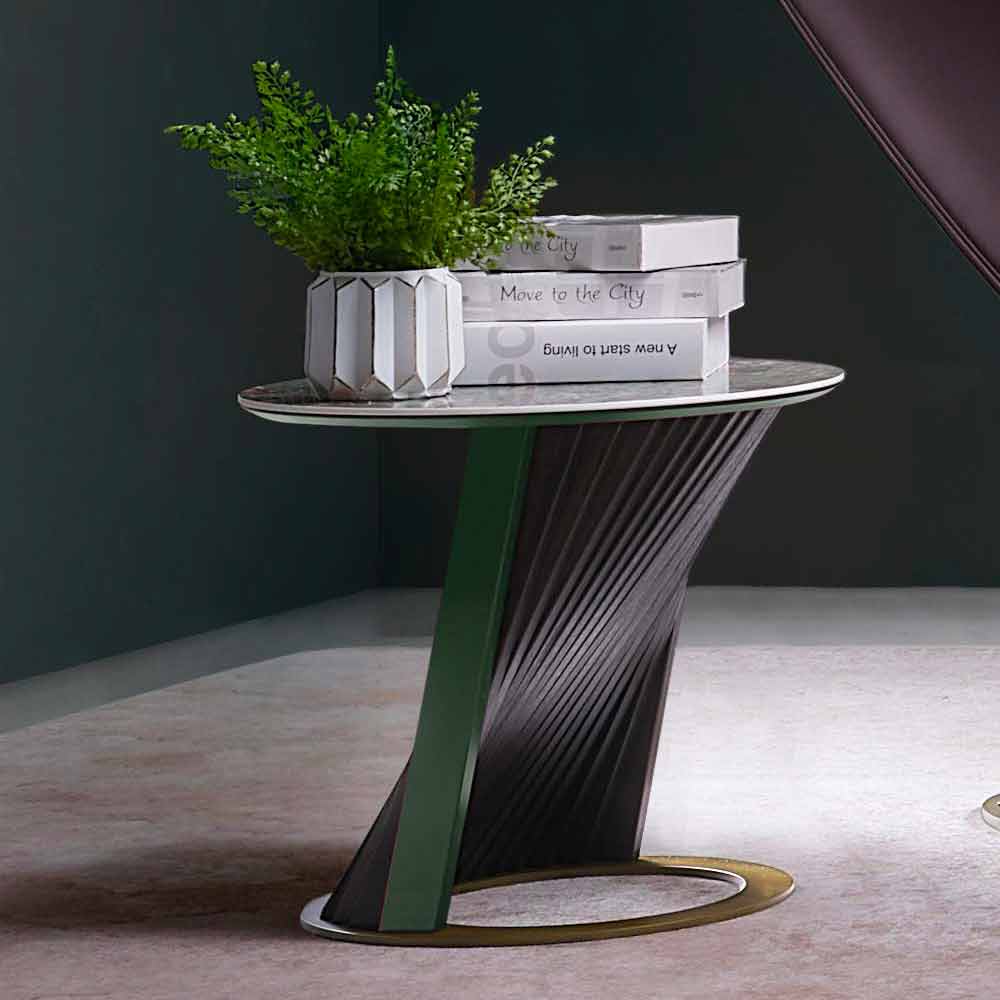 Runder Luxus-Couchtisch aus Gres und Esche Made in Italy - Bering
