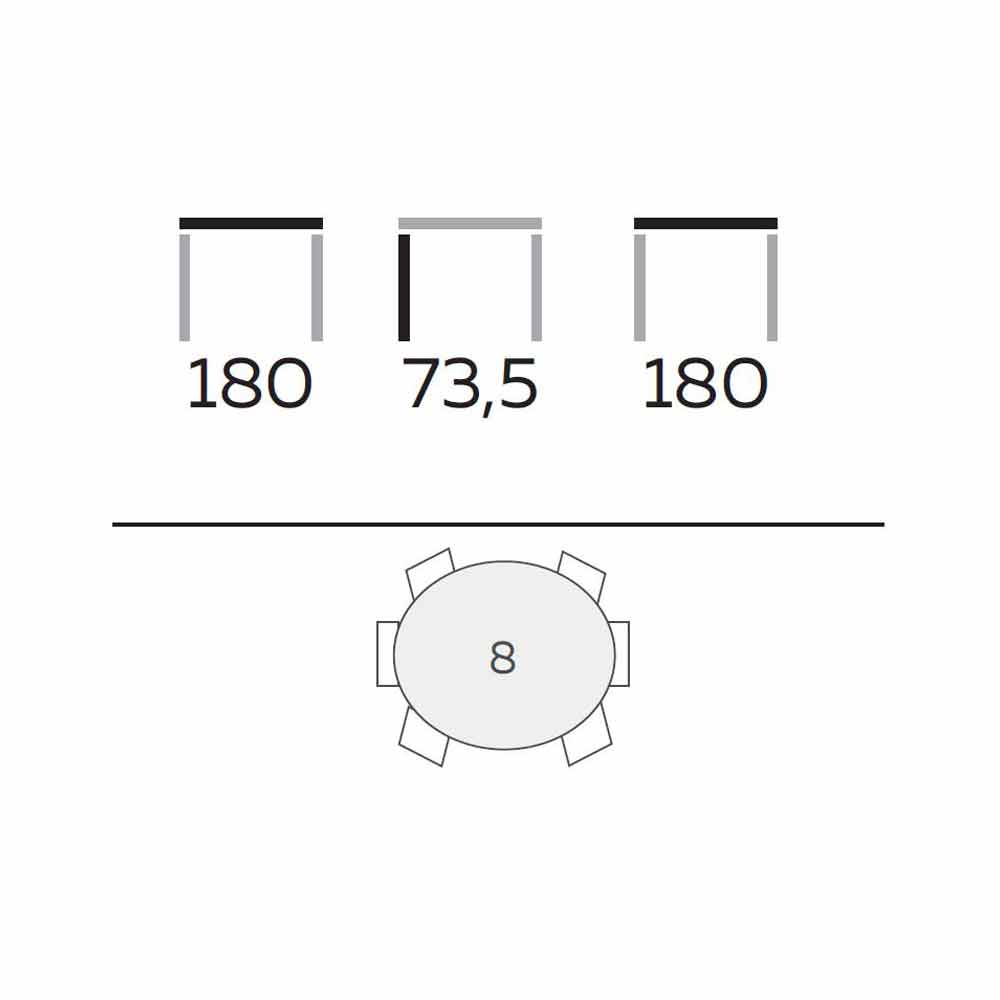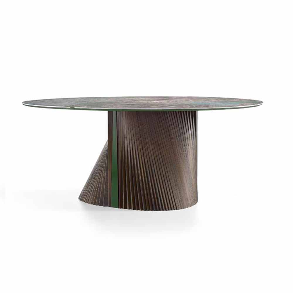 und Marmoreffekt , das Platz für bis zu 8 Personen bietet, während die Basis aus handgeölten Eschenholzstreifen in schwarzgrauem Finish besteht und genau das Element ist, das den Tisch auszeichnet die starken Linien, die dem Produkt und dem gesamten Raum Dynamik und Bewegung verleihen.