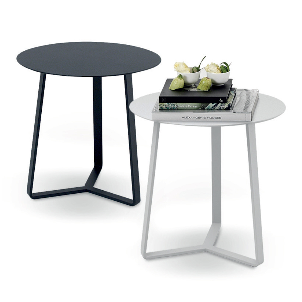 Beistelltisch für den Garten , bestehend aus Platte und Struktur aus Aluminium, lackiert mit Epoxidpulvern in Weiß und Anthrazit .