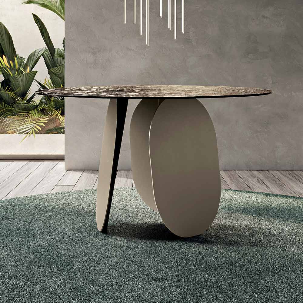 Erhältlich in zwei Durchmessern, ist es dank seiner runden Form perfekt geeignet, um Geselligkeit zu fördern und passt ideal in moderne Wohnzimmer und elegante Küchen.