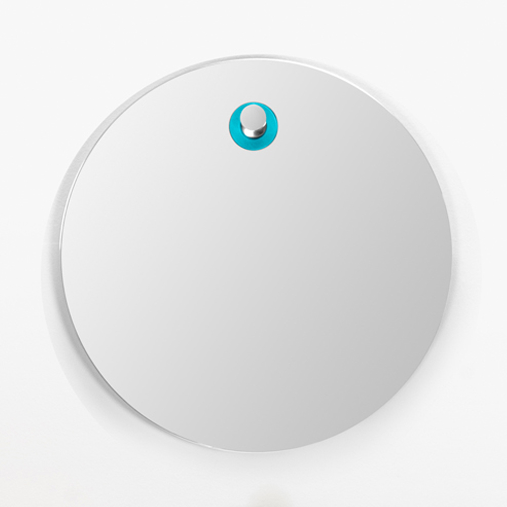 Runder Wandspiegel mit farbigem Teakholzeinsatz Made in Italy.