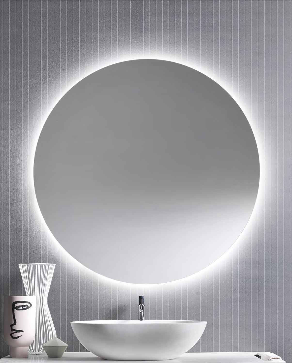Runder hintergrundbeleuchteter Wandspiegel mit LED-Licht Made in Italy.
