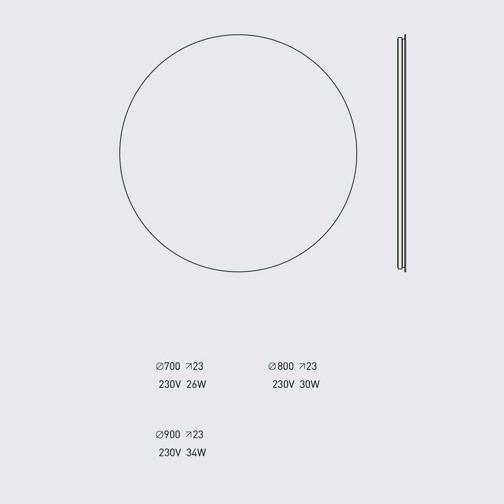 Runder Wandspiegel in 3 Größen erhältlich, um sich an alle Bedürfnisse anzupassen, um ein Badezimmermöbel mit einem modernen und raffinierten Design nachzubilden. Es ist mit LED-Licht hinterleuchtet, das in zwei Varianten erhältlich ist, eine wärmer und eine natürlichere. Handgefertigt in Italien.