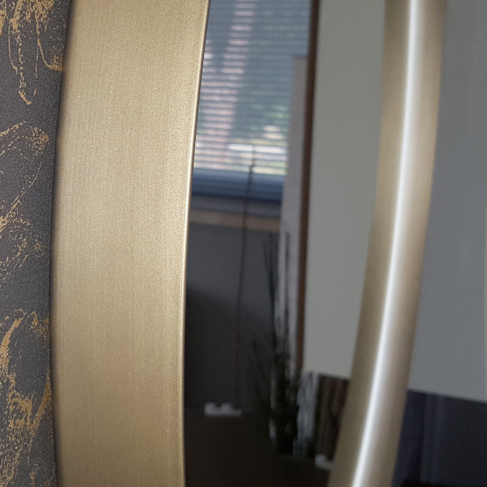 Dieser runde Wandspiegel besticht durch sein edles Design mit einem Metallrahmen in vier Ausführungen mit einer Stärke von 5 cm. Ideal für die Schaffung luxuriöser und raffinierter Atmosphären, passt es sich an verschiedene Kontexte an, um die Umgebung zu charakterisieren. Die an 4 Seiten integrierte 4000k LED-Beleuchtung rundet das funktionale Design ab .