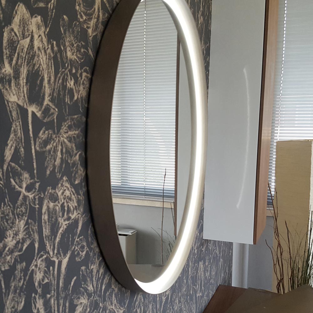 Runder Wandspiegel mit Metallrahmen in 4 Ausführungen und LED-Licht, hergestellt in Italien.