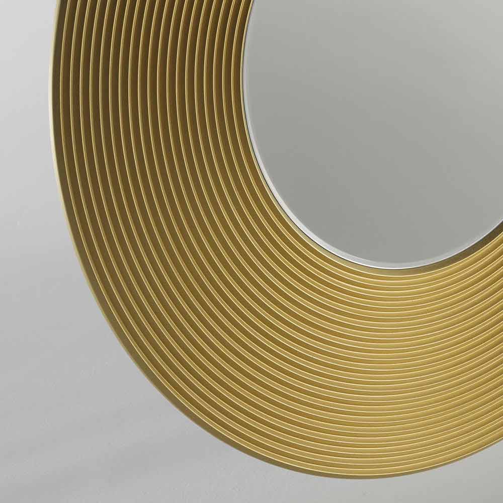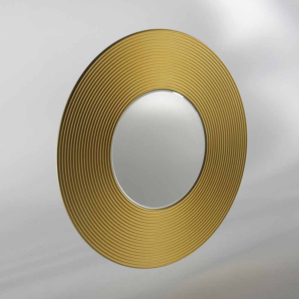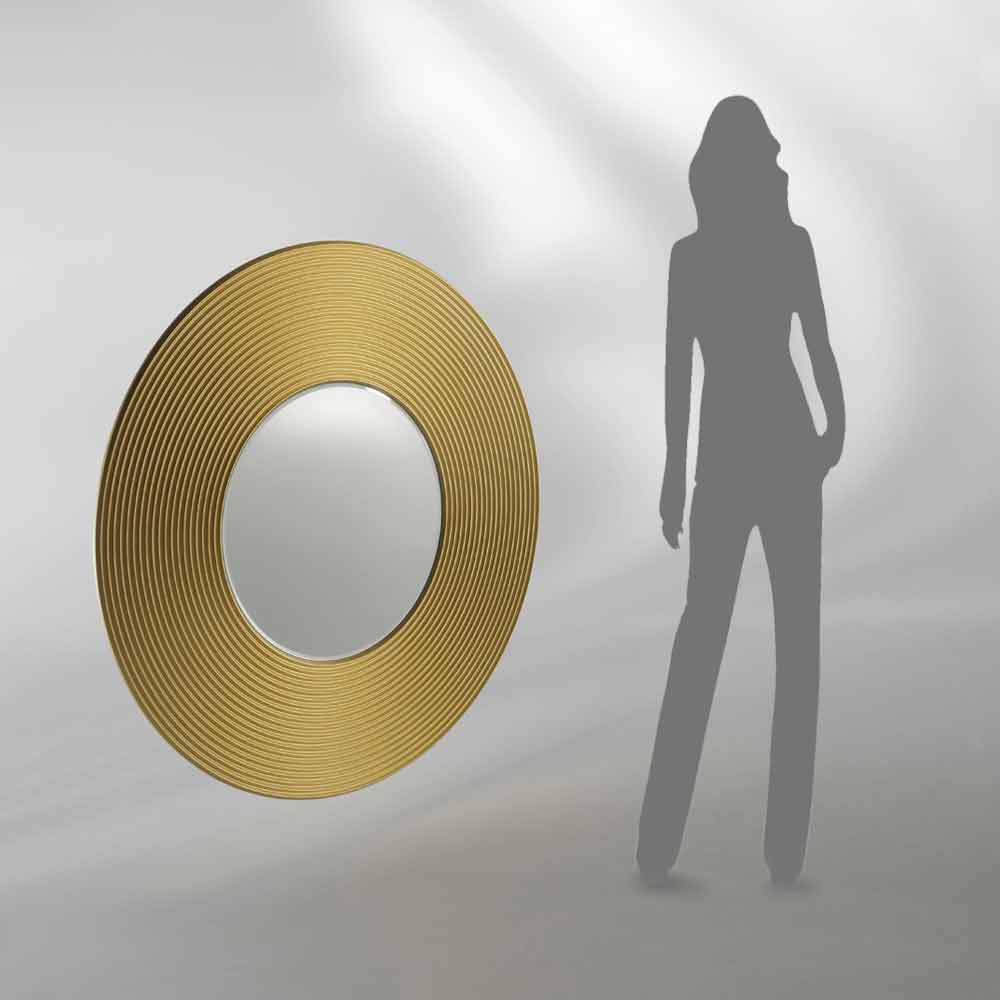 Runder Wandspiegel im modernen Design mit MDF Rahmen in gold, weiß oder schwarz lackiert satiniert. Der Spiegel ist mit einen MDF Spiegelrahmen ausgestattet, der mit Ringen dekoriert wurde, in der Mitte befindet sich der Spiegel.