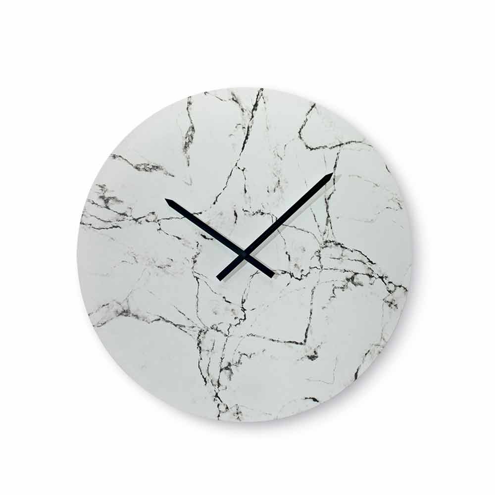 Runde Designer-Wanduhr mit Marmoreffekt, hergestellt in Italien.