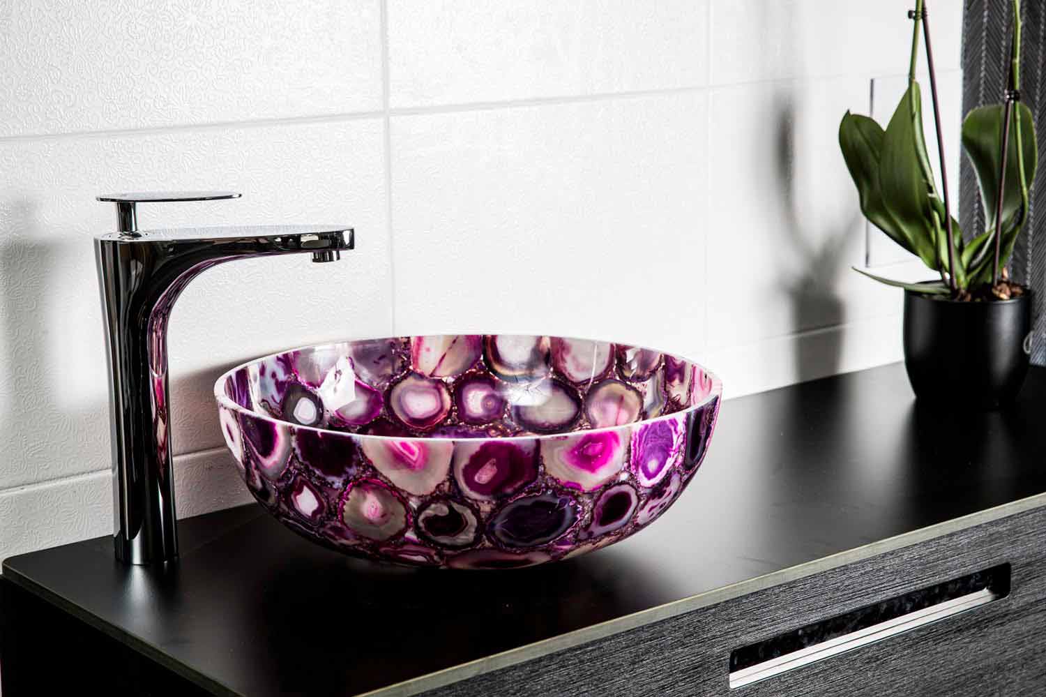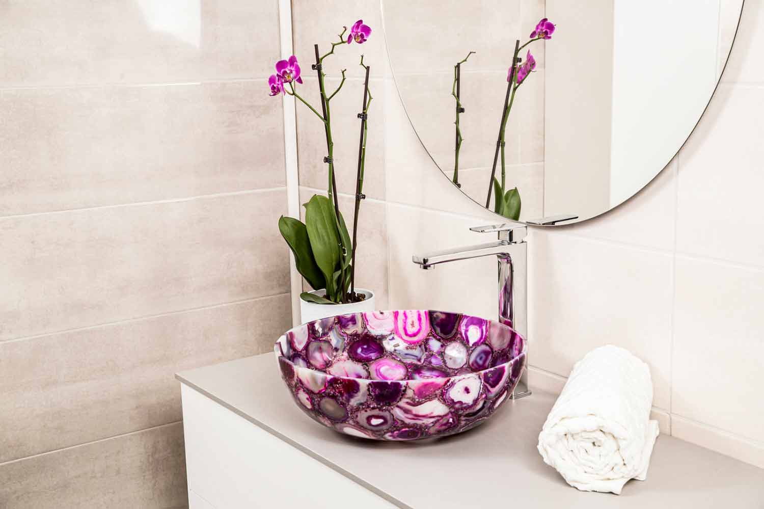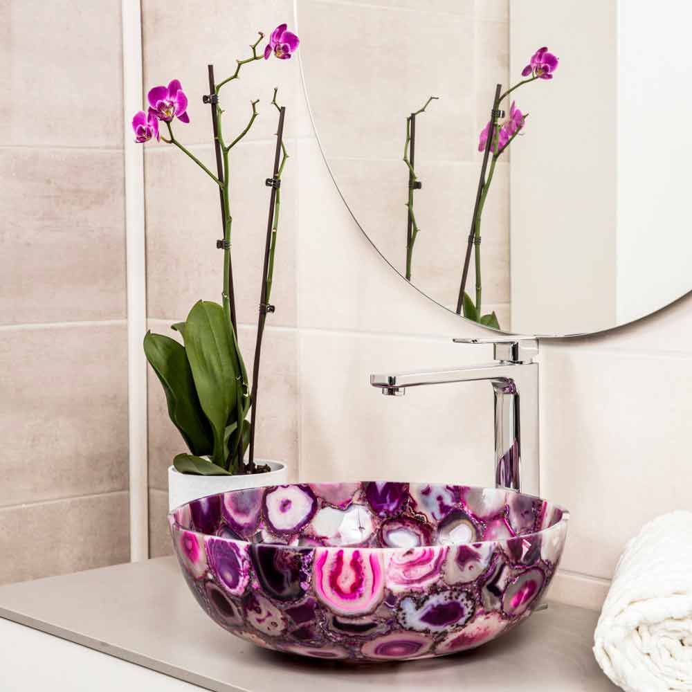 Handgearbeitetes Aufsatzwaschbecken aus Achat.