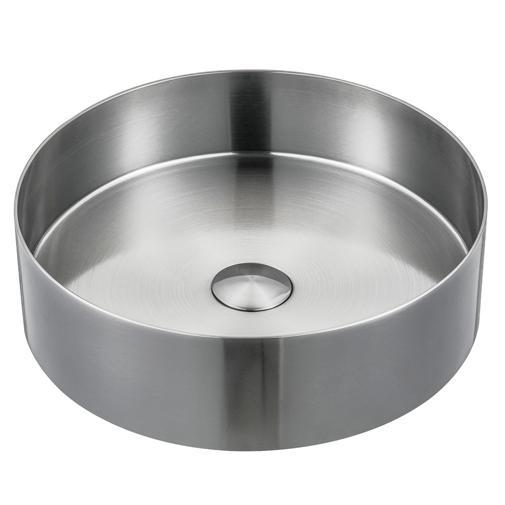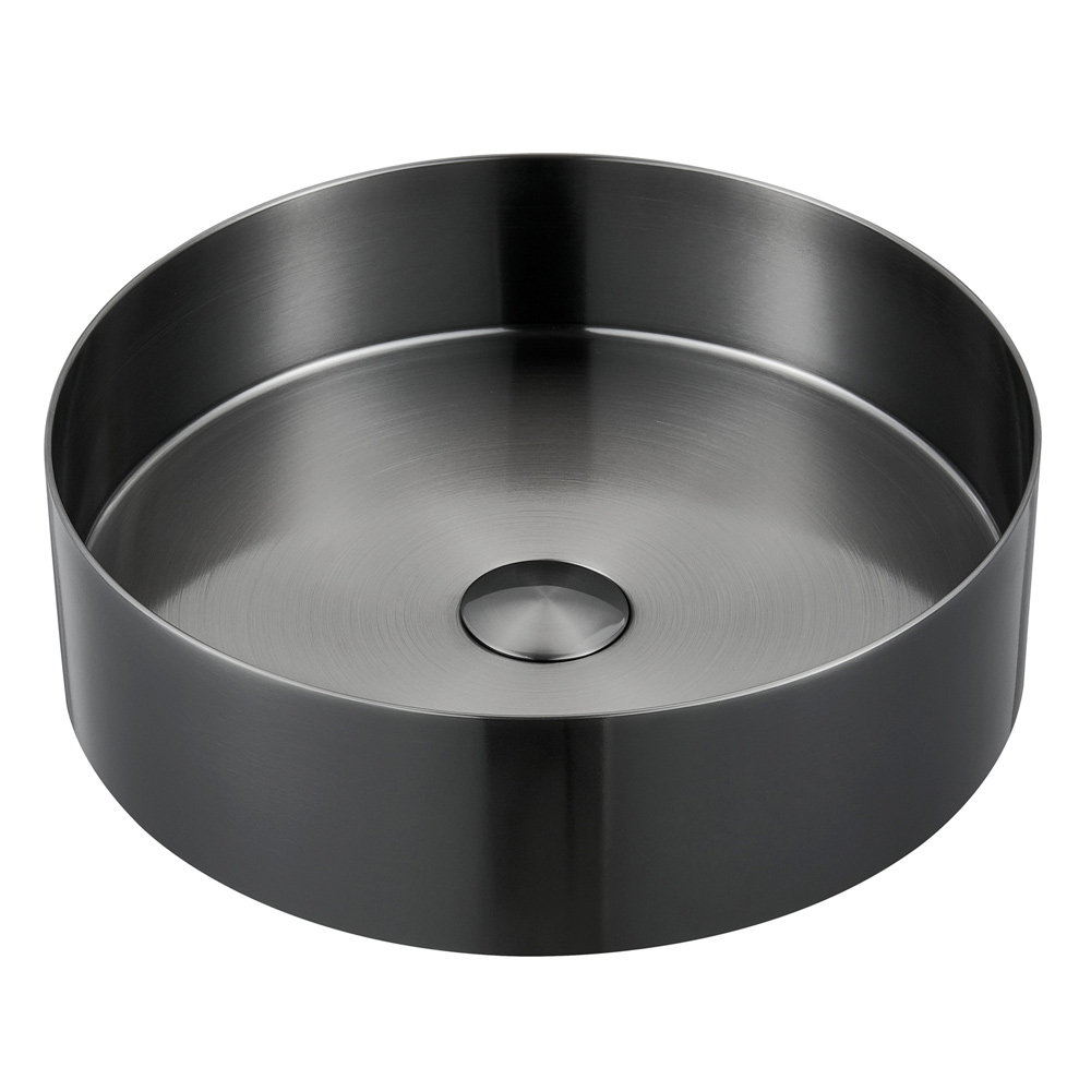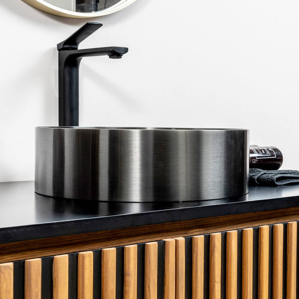Das runde Aufsatzwaschbecken aus 3 mm starkem Edelstahl SUS 304 ist ein Juwel an Design und Funktionalität. Es ist aus einem einzigen Metallblech gefertigt und bietet eine klare, moderne Ästhetik. Die Endbearbeitung der PVD+Nano-Beschichtung in Kombination mit sorgfältigem Bürsten verleiht dem Objekt ein attraktives und fast rätselhaftes Aussehen und verbessert den Glanz sowie die Widerstandsfähigkeit gegen Flecken und Kratzer. Das Design zeichnet sich durch ausgewogene Formen und ideale Proportionen aus in drei Ausführungen , die sich elegant an jede Umgebung anpassen. Darüber hinaus machen raffinierte Details wie die mitgelieferte passende Ablaufabdeckung und der völlige Verzicht auf sichtbare Schweißnähte dieses Waschbecken zu einem wahren Meisterwerk der Handwerkskunst und des Designs und machen es zu einem herausragenden Stück für Badezimmer mit luxuriöser und zeitgemäßer Ausstrahlung.