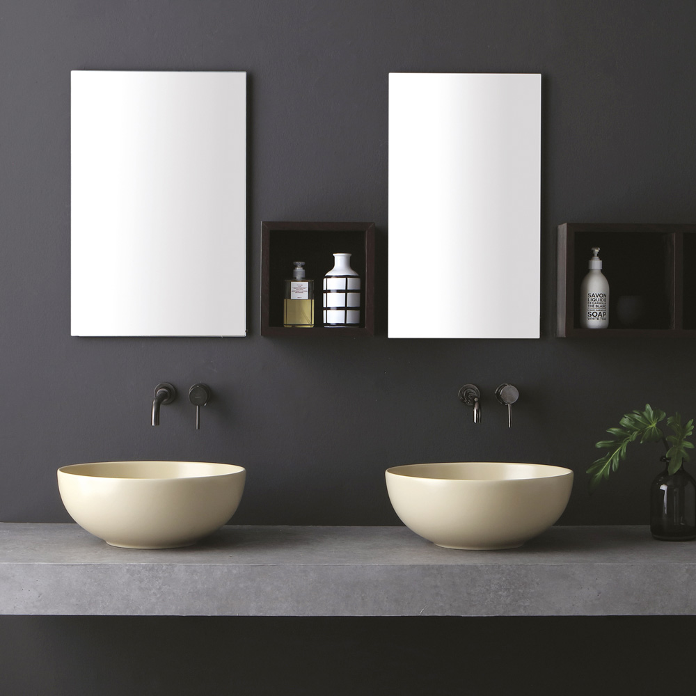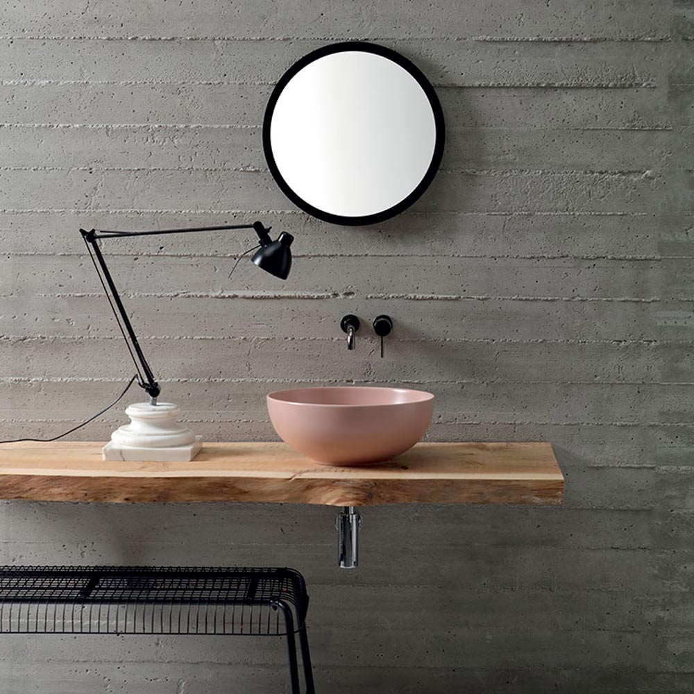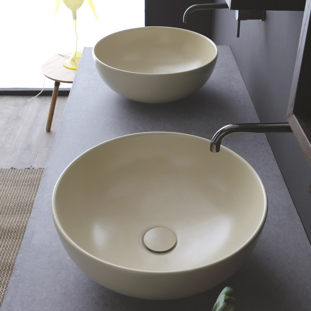 Rundes Aufsatzwaschbecken aus farbiger Keramik mit mattem Finish durch 100 % Handwerkskunst „Made in Italy“ . Einfachheit und Vielseitigkeit vereinen sich, um diesem wunderbaren Möbelstück mit einem minimalistischen und raffinierten Stil Leben einzuhauchen, das jeden modernen Badezimmerbereich vervollständigt und ihm einen Hauch von Persönlichkeit und Eleganz verleiht.